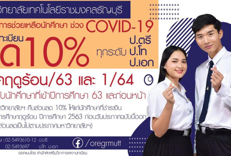 สำนักส่งเสริมวิชาการและงานทะเบียนหรือ สวท. มหาวิทยาลัยเทคโนโลยีราชมงคลธัญบุรี แจ้งมาตรการในการช่วยเหลือนักศึกษาในช่วง COVID-19 ระบาด โดยการลดค่าลงทะเบียนภาคฤดูร้อนในปีการศึกษา 2563 และ 2564 ภาคเรียนที่ 1 10% ในทุกระดับปริญญา ทั้งนี้ มหาวิทยาลัยจะคืนส่วนลด 10% ให้แก่นักศึกษาที่ชำระเงินในภาคการศึกษาฤดูร้อน ปีการศึกษา 2563 ก่อนวันประกาศฉบับนี้ออก โดยเงื่อนไขส่วนลดเป็นไปตามประกาศมหาวิทยาลัยเทคโนโลยีราชมงคลธัญบุรี โดย สวท.จะรวบรวมข้อมูลรายชื่อนักศึกษาแล้วนำส่งกองคลังของมหาวิทยาลัย เพื่อดำเนินการคืนเงินให้แก่นักศึกษาตามเลขบัญชีธนาคารที่แจ้งไว้ โดยมีระยะเวลาประมาณ 2 สัปดาห์ หากเกินกว่า 2 สัปดาห์แล้วนักศึกษารายใด ยังไม่ได้รับเงินคืน ให้ติดต่อได้ที่ Line openchat สามารถสอบถามข้อมูลเพิ่มเติมได้ที่ www.oreg.rmutt.ac.th . นายกฤตรัตน์ ดาวสุวรรณ ...