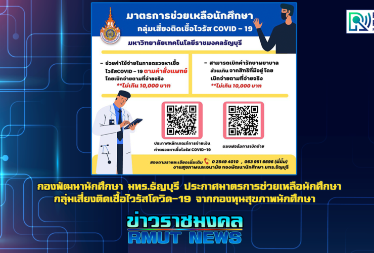 จากการแพร่ระบาดของไวรัสโควิด-19 ฝ่ายงานสุขภาพและอนามัย กองพัฒนานักศึกษา มหาวิทยาลัยเทคโนโลยีราชมงคลธัญบุรี หรือ มทร. ธัญบุรี ได้มีมาตรการช่วยเหลือนักศึกษา กลุ่มเสี่ยงติดเชื้อไวรัสโควิด-19 เพื่อเป็นการป้องกันการแพร่ระบาดไม่ให้เกิดการลุกลาม มหาวิทยาลัยจึงมีหลักเกณฑ์การจ่ายเงินค่าตรวจหาเชื้อไวรัสโควิด-19 ให้กับนักศึกษาที่อยู่ในกลุ่มเสียง โดยใช้ทุนจากกองทุนสุขภาพนักศึกษา มหาวิทยาลัยจะให้สิทธิในการเบิกค่าตรวจหาเชื้อไวรัสโควิด-19 ได้ไม่เกินหนึ่งหมื่นบาทต่อครั้ง ทั้งนี้ หากมีการพบเชื้อ มหาวิทยาลัยจะส่งนักศึกษาเข้ารับการรักษาในสถานพยาบาล โดยให้เบิกจ่ายค่ารักษาตามสิทธิที่นักศึกษามีอยู่ แต่หากมีส่วนเกินกว่าสิทธิที่นักศึกษามี นักศึกษาสามารถเบิกได้แต่ต้องไม่เกินหนึ่งหมื่นบาท ต้องยื่นเอกสารการเบิกจ่ายต่อกองพัฒนานักศึกษา พร้อมแนบหลักฐานประกอบการเบิกจ่าย ได้แก่ . 1.สำเนาบัตรประจำตัวนักศึกษา และบัตรประจำตัวประชาชน 2.หลักฐานค่าใช้จ่ายจากสถานพยาบาล 3.ใบรับรองผลการตรวจที่ระบุความจำเป็นในการตรวจหาเชื้อไวรัสโควิด-19 จากสถานพยาบาลที่เข้ารักษา นักศึกษาที่สนใจสามารถสอบถามรายละเอียดเพิ่มเติมได้ที่ 0-2549-4010 และ 06-3951-6696 . น.ส.รุ่งฤทัย แขกพงษ์ วิทยุราชมงคลธัญบุรี รายงาน ...
