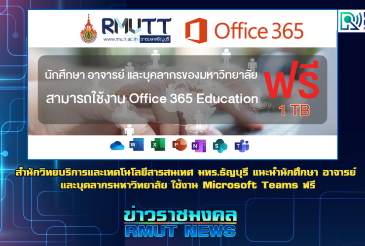 สำนักวิทยบริการและเทคโนโลยีสารสนเทศ มหาวิทยาลัยเทคโนโลยีราชมงคลธัญบุรี แนะนำนักศึกษา อาจารย์ และบุคลากรของมหาวิทยาลัย ใช้งาน Microsoft Teams ฟรี โดยมี application ทั้ง Android และ iOS หรือทำงานผ่านระบบเว็บ เหมาะสำหรับการทำงานในองค์กร ซึ่งการันตีมาตรฐานความปลอดภัยในการส่งผ่านข้อมูลที่เป็นความลับ สามารถจัดประชุม video conference ได้สูงสุด 250 คนต่อ 1 meeting ซึ่งเพียงพอต่อการใช้งาน สามารถแชร์ไฟล์และหน้าจอการนำเสนอได้ รวมถึงโทรประชุม (call conference) การสนทนาออนไลน์ (online chat) ร่วมกันได้จากทุกที่ทุกเวลา มีระบบบันทึก VDO การประชุม ตลอดจนเครื่องมืออื่นๆ สำหรับการทำงานได้ร่วมกันแบบออนไลน์และสามารถเชื่อมโยงบัญชีนักศึกษา ...