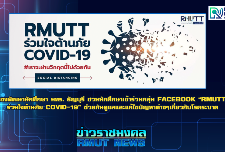 ฝ่ายกิจกรรมพัฒนานักศึกษา กองพัฒนานักศึกษา มหาวิทยาลัยเทคโนโลยีราชมงคลธัญบุรี หรือ มทร. ธัญบุรี ชวนนักศึกษาเข้าร่วมกลุ่มทาง FACEBOOK “RMUTT ร่วมใจต้านภัย COVID-19” ด้วยสถานการณ์การแพร่ระบาดของไวรัสโควิด-19 ทำให้ผู้บริหารของมหาวิทยาลัยมีความห่วงใยคณาจารย์ บุคลากรและนักศึกษาทุกคน ดังนั้นมหาวิทยาลัยจึงให้ฝ่ายกองพัฒนานักศึกษา มทร.ธัญบุรี สร้างกลุ่ม “RMUTT ร่วมใจต้านภัย COVID-19” ขึ้น เพื่อให้คณาจารย์บุคลากรและนักศึกษาทุกคน ที่มีข้อสังเกตรีบช่วยกันดูแล และแก้ไขปัญหาต่างๆเกี่ยวกับไวรัสโควิด-19 ได้แจ้งรายละเอียดข้อสงสัยและข้อกังวลใจต่างๆ เพื่อผู้บริหารและผู้ที่เกี่ยวข้องได้ให้การช่วยเหลือทันที . นอกจากนี้ ภายในกลุ่ม FACEBOOK “RMUTT ร่วมใจต้านภัย COVID-19” ยังมีอาจารย์และนักศึกษา นำข้อมูลและข่าวสารที่เกี่ยวข้องกับไวรัสโควิด-19 มาเผยแพร่ให้สมาชิกภายในกลุ่มรับทราบอีกด้วย นักศึกษา มทร.ธัญบุรี ที่สนใจสามารถเข้าร่วมกลุ่มได้ที่ FACEBOOK: ...