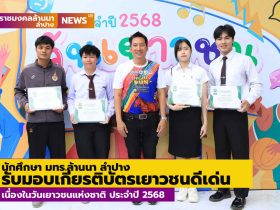 นักศึกษา มทร.ล้านนา ลำปาง รับมอบเกียรติบัตรเยาวชนดีเด่น เนื่องในวันเยาวชนแห่งชาติ ประจำปี 2568 เทศบาลนครลำปาง