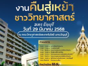 คณะวิทยาศาสตร์และเทคโนโลยี มทร.ธัญบุรี ขอเชิญชวนศิษย์เก่า คณาจารย์และบุคลากร ผู้เกษียณอายุราชการ เข้าร่วม “งานคืนสู่เหย้าชาววิทยาศาสตร์ 2568” เสาร์ที่ 29 มี.ค.นี้