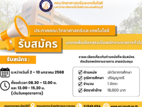 คณะวิทยาศาสตร์และเทคโนโลยี มทร.ธัญบุรี รับสมัครบุคคลเพื่อเลือกสรรเป็นพนักงานราชการ สายสนับสนุน ตำแหน่งนักวิชาการศึกษา จำนวน 1 อัตรา