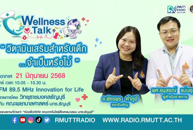 Wellness talk (EP.72) I วิตามินเสริมสำหรับเด็ก จำเป็นหรือไม่ วิตามินเป็นสารอินทรีย์ที่มีอยู่ในอาหารอยู่แล้ว มีความสำคัญ เพราะร่างกายต้องการใช้ไปสร้างการเจริญเติบโต ระบบสืบพันธุ์ ระบบการทำงานของอวัยวะต่างๆ ในร่างกาย เด็กที่รับประทานอาหารครบ 5 หมู่ มีพัฒนาการและการเจริญเติบที่สมวัย ระบบการทำงานของร่างกายปกติ ดูดซึมสารอาหารได้ปกติ มักจะได้รับสารอาหารที่เพียงพอต่อความต้องการของร่างกายอยู่แล้ว เว้นเพียงแต่เด็กที่มีภาวะขาดสารอาหารหรือมีโรคบางอย่างที่ส่งผลต่อการดูดซึมสารอาหาร ดำเนินรายการโดย ผศ.อนุสรณ์ แน่นอุดร แขกรับเชิญ อ.พัชรพร คำภูมี รับฟังรายการได้ทาง FM 89.5 MHz Innovation for Life วิทยุราชมงคลธัญบุรี วันเสาร์ที่ 21 มิถุนายน 2568 เวลา 10.05 ...