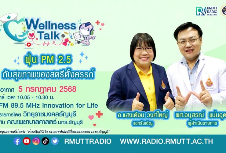 Wellness talk (EP.74) I ฝุ่น PM 2.5 กับสุขภาพของสตรีตั้งครรภ์ การตั้งครรภ์เป็นช่วงเวลาที่สำคัญ การดูแลสุขภาพจึงเป็นสิ่งจำเป็น ฝุ่น PM 2.5 เป็นภัยเงียบที่ส่งผลกระทบต่อสุขภาพโดยเฉพาะในสตรีตั้งครรภ์ ดังนั้นมาทำความเข้าใจถึงผลกระทบและวิธีป้องกันอันตรายจากฝุ่น PM 2.5 เพื่อสุขภาพที่ดีของคุณแม่ตั้งครรภ์และทารกในครรภ์ ที่มาของฝุ่น PM 2.5 มาจาก ฝุ่นควันจากท่อไอเสียรถยนต์ โรงงานอุตสาหกรรม และจากการเผาไหม้ตอซังข้าว หญ้าแห้ง เป็นต้น ผลกระทบต่อสตรีตั้งครรภ์ เช่น ระบบทางเดินหายใจ ระบบการไหลเวียนโลหิตของร่างกาย ยังเพิ่มความเสี่ยง ผลกระทบต่อทารกในครรภ์ เช่น การคลอดก่อนกำหนด โดยฝุ่น PM 2.5 เพิ่มความเสี่ยง ในการคลอดก่อนกำหนด ...