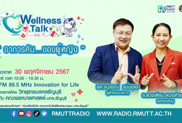 Wellness talk (EP.44) I อาการคัน…ของผู้หญิง คันอวัยวะเพศหญิงภายนอก อาการคันอวัยวะเพศหญิงภายนอกหรือคันนอกช่องคลอดนั้น คืออาการ คันบริเวณหัวหน่าว ไรขน คันบริเวณกลีบ แคมเล็ก แคมใหญ่ หรือผิวหนังภายนอก อวัยวะเพศหญิงซึ่งมักเกิดจากการโกนขนบริเวณอวัยวะเพศ ความเครียด การสวมใส่ เสื้อผ้าหรือชุดชั้นในที่รัดแน่น การระคายเคืองที่เกิดจากการแพ้น้ำยา สบู่ ผงชักฟอก คันอวัยวะเพศหญิงภายในการคันช่องคลอดภายในคืออาการคันในช่องคลอดหรือภายให้เพศ มักเกิดจากการติดเชื้อแบคทีเรีย เชื้อรา หรือติดเชื้ออื่นๆ ดำเนินรายการโดย ผศ.อนุสรณ์ แน่นอุดร แขกรับเชิญ อ.ดวงเดือน ดวงสำราญ รับฟังรายการได้ทาง FM 89.5 MHz Innovation for Life วิทยุราชมงคลธัญบุรี วันเสาร์ที่ ...