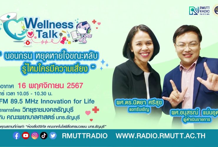 Wellness talk (EP.42) I นอนกรน หยุดหายใจขณะหลับ รู้ไหมใครมีความเสี่ยง การนอนกรนนั้นอาจเป็นอันตรายมากกว่าที่คิดได้ คนส่วนใหญ่มักคิดว่าการนอนกรนนั้น ดูเป็นเรื่องเล็กน้อย บางคนอาจคิดว่าการนอนกรนเป็นการบอกว่าเรานอนหลับได้สนิท ซึ่งทางการแพทย์ได้พิสูจน์แล้วว่า จริงๆ แล้ว การนอนกรนนั้น เป็นสัญญาณบ่งบอกว่าร่างกายผิดปกติ และมีการรบกวนการนอนหลับ การนอนกรนนั้นสามารถเกิดขึ้นได้กับคนทุกเพศ ทุกวัย และการนอนกรนที่รุนแรงและ ต่อเนื่องนั้น ก็อาจเป็นสาเหตุที่ทำให้เกิดโรคสำคัญ ๆ ต่าง ๆ หลายโรคได้ อาทิเช่น โรคความดันโลหิตสูง โรคหลอดเลือดสมอง โรคกล้ามเนื้อหัวใจตาย ดำเนินรายการโดย ผศ.อนุสรณ์ แน่นอุดร แขกรับเชิญ ผศ.ดร.นิตยา ศรีสุข รับฟังรายการได้ทาง FM 89.5 MHz ...