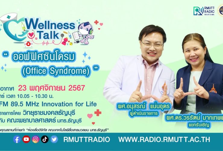 Wellness talk (EP.43) I ออฟฟิศซินโดรม (Office Syndrome) กลุ่มอาการปวดกล้ามเนื้อและเยื่อพังผืด รวมถึงอาการปวดหรือชาจากอาการอักเสบจากเนื้อเยื่อและเอ็น มักเกิดขึ้นกับกลุ่มวัยทำงานที่ต้องนั่งทำงานในออฟฟิศหรือทำงานโดยใช้คอมพิวเตอร์และมือถือเป็นประจำ กลุ่มเสี่ยง คนทำงานในออฟฟิศ : การนั่ง ยืน หรือค้างอยู่ในท่า ๆ หนึ่งนานเกินไป ก็ส่งผลให้กล้ามเนื้อมัดที่ใช้ในอิริยาบถนั้น ๆ เกิดอาการตึงและปวด ผู้ใช้แรงงานเป็นประจำหรือนักกีฬา : จากการเคลื่อนไหวที่ไม่เหมาะสม เช่น การยกของผิดท่า การกระชากกล้ามเนื้อเร็วเกินไป การออกแรงมากเกินไป หรือต้องแบกของที่มีน้ำหนักมากเกินไป ทำให้กล้ามเนื้อหรือกระดูกได้รับบาดเจ็บเฉียบพลันหรือเรื้อรัง ดำเนินรายการโดย ผศ.อนุสรณ์ แน่นอุดร แขกรับเชิญ ผศ.ดร.วรรัตน์ มากเทพพงษ์ รับฟังรายการได้ทาง FM 89.5 MHz ...