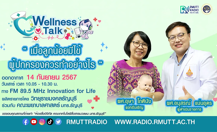 Wellness talk (EP.33) I เมื่อลูกน้อยมีไข้…ผู้ปกครองควรทำอย่างไร การเจ็บปวดเป็นเรื่องสำคัญ โดยเฉพาะลูกน้อยที่ต้องดูแลเป็นพิเศษ ซึ่งในกรณีไข้สูงเกิน 37.8 องศาเซลเชียส สามารถให้ยาพาราเซตามอลสำหรับเด็กควบคู่ไปได้ แต่ไม่ควรใช้ยาลดไข้ติดต่อกันเกิน 3 วัน หากมีไข้นานเกินกว่านั้นควรพาไปพบแพทย์ทันที ดำเนินรายการโดย ผศ.อนุสรณ์ แน่นอุดร แขกรับเชิญ ผศ.อุษา โถหินัง รับฟังรายการได้ทาง FM 89.5 MHz Innovation for Life วิทยุราชมงคลธัญบุรี วันเสาร์ที่ 14 กันยายน 2567 เวลา 10.05 – 10.30 น. นำเสนอสาระความรู้โดย คณะพยาบาลศาสตร์ ...