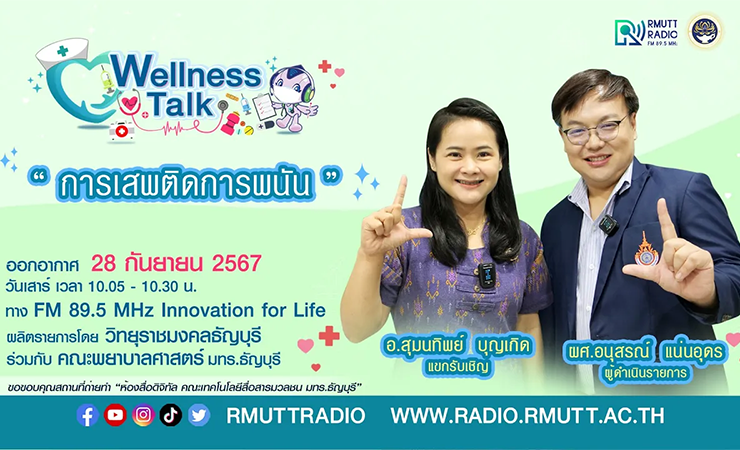 Wellness talk (EP.35) I การเสพติดการพนัน โรคทางจิตเวชที่ต้องได้รับการรักษา การเล่นพนันอย่างบาคาร่า ทำให้หลายคนหันมาเกาะติดกระแส ด้วยความตื่นตัว ห่วงใยคนในครอบครัว และหวั่นเกรงว่าคนใกล้ชิดจะเกาะติดกระแสนี้ในทางที่ผิดจนเป็น “โรคติดพนัน” ก่อให้เกิดปัญหาหนี้สิน เพราะไม่กล้าบอกคนในครอบครัวหรือคนใกล้ชิดให้รู้ ไปขอยืมเงินจากคนอื่นแทน และอาจทำให้เกิดปัญหาอาชญากรรมหลายหลากรูปแบบตามมา รวมไปถึงพฤติกรรมการลักขโมย การค้ายาเสพติด การค้าประเวณี การทำร้ายตัวเอง ดำเนินรายการโดย ผศ.อนุสรณ์ แน่นอุดร แขกรับเชิญ อ.สุมนทิพย์ บุญเกิด รับฟังรายการได้ทาง FM 89.5 MHz Innovation for Life วิทยุราชมงคลธัญบุรี วันเสาร์ที่ 28 กันยายน 2567 เวลา 16.30 ...