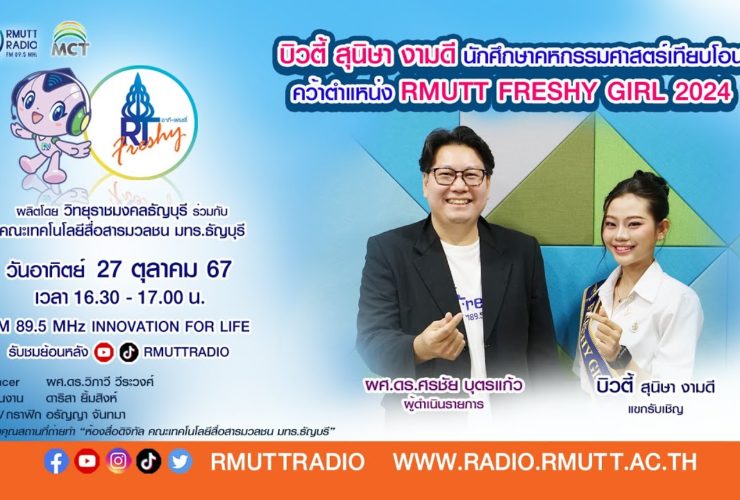 RT Freshy (EP.37) I บิวตี้ สุนิษา งามดี นักศึกษาคหกรรมศาสตร์เทียบโอน คว้าตำแหน่ง RMUTT Freshy Girl 2024 เล่าเรื่องราวประสบการณ์ ก่อนเข้าเรียนในคณะเทคโนโลยีคหกรรมศาสตร์ มทร.ธัญบุรี และเรื่องราวที่น่าประทับใจในหลากหลายมุมมอง การประสบความสำเร็จของ บิวตี้ สุนิษา งามดี รวมไปถึงการคว้าตำแหน่ง RMUTT Freshy Girl 2024 ซึ่งเป็นรางวัลแห่งความภาคภูมิใจ สร้างความสุข สร้างความมั่นใจ ติดตามได้ในรายการ RT Freshy ดำเนินรายการโดย ผู้ช่วยศาสตราจารย์ ดร.ศรชัย บุตรแก้ว สาขาเทคโนโลยีมัลติมีเดีย คณะเทคโนโลยีสื่อสารมวลชน มทร.ธัญบุรี แขกรับเชิญ ...