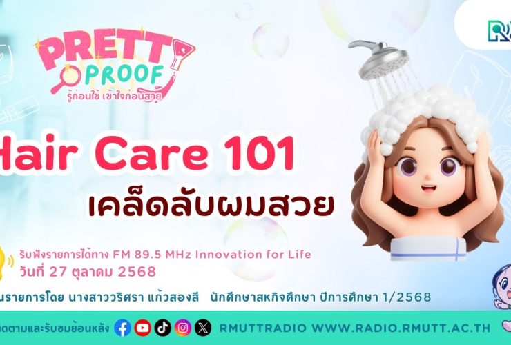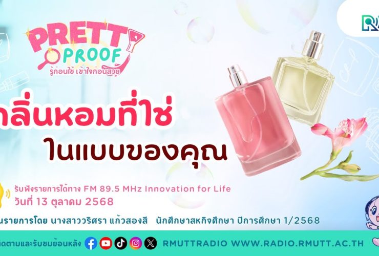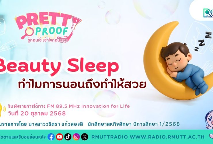 Pretty Proof รู้ก่อนใช้… เข้าใจก่อนสวย นำเสนอสาระความรู้ด้านวิทยาศาสตร์เพื่อการตัดสินใจด้านความงามอย่างมืออาชีพ เพื่อให้คุณมีข้อมูลในการตัดสินใจดูแลตัวเองอย่างชาญฉลาด ดำเนินรายการโดย วริศรา แก้วสองสี นักศึกษาสหกิจศึกษา ปีการศึกษา 1/2568 สาขานวัตกรรมการสื่อสาร คณะบริหารธุรกิจและเทคโนโลยีสารสนเทศ มหาวิทยาลัยเทคโนโลยีราชมงคลตะวันออก เขตพื้นที่จักรพงษภูวนารถ รับฟังรายการได้ทาง FM 89.5 MHz Innovation For Life นวัตกรรมเพื่อชีวิต วิทยุราชมงคลธัญบุรี ออกอากาศ วันที่ 13 ตุลาคม 68 เวลา 11.30 – 12.00 น. ...