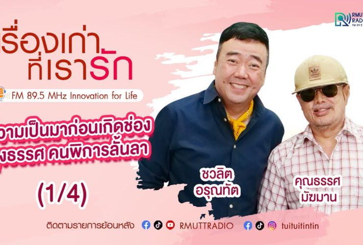 เรื่องเก่าที่เรารัก l EP 272 – คุณธรรศ มัฆมาน เจ้าของช่อง ลุงธรรศ คนพิการลั้นลา แขกรับเชิญพิเศษ คุณชัยพล หนูประดิษฐ์ (4/4) อุปสรรคในการใช้ชีวิตก็คือสังคมรอบข้างเปลี่ยนไป คุณชัยพลเป็นเพื่อนสนิทของคุณธรรศ สิ่งที่ทำให้ประทับใจในตัวคุณพล คือช่วงที่ตนเองตกงาน และมีโควิดระบาดได้รับการช่วยเหลืออย่างมาก เมื่อโดนสาดน้ำกรด อุปสรรคในการใช้ชีวิตก็คือสังคมรอบข้างเปลี่ยนไป เพื่อนๆหายไปจากชีวิต คุณพลได้รับพลังบวก แนวทางการใช้ชีวิต การให้กำลังใจจากคุณธรรศ สิ่งที่ทำให้ผ่านทุกปัญหาคือการเรียนรู้กับสังคมที่ตนเองอยู่ ไม่เสียเวลากับสิ่งที่เสียไปแล้ว รับฟังรายการได้ทาง FM 89.5 MHz Innovationforlife วิทยุราชมงคลธัญบุรี ออกอากาศ วันที่ 25 ตุลาคม 2567 ดำเนินรายการโดย ชวลิต ...