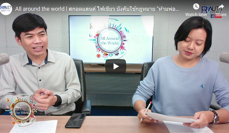 Topic ในช่วงที่ 3 – สหรัฐอาหรับเอมิเรสต์ (ยูเออี) อนุญาตให้ดื่มสุรา-คู่รักอยู่ด้วยกันได้ แม้ยังไม่แต่งงาน หวังดึงดูดต่างชาติเดินทางมาเที่ยว – สภาสกอตแลนด์ ไฟเขียวบังคับใช้กฎหมาย “ห้ามพ่อแม่ตีลูก” – แฟนฟุตบอลนิยมเข้าร่วม “ทวิตเตอร์” ติดตามข้อมูล ข่าวสาร ของทีมโปรด ยอดเติบโตขึ้นเรื่อยๆ โดยเฉพาะช่วงที่ไม่สามารถเข้าสนามได้ [15 พฤศจิกายน 2563] ดำเนินรายการโดย อาทิตยา ปักกะทานัง และปิยะพงษ์ เคนทวาย ออกอากาศทางสถานีวิทยุกระจายเสียงมหาวิทยาลัยเทคโนโลยีราชมงคลธัญบุรี FM 89.5 HHz ...