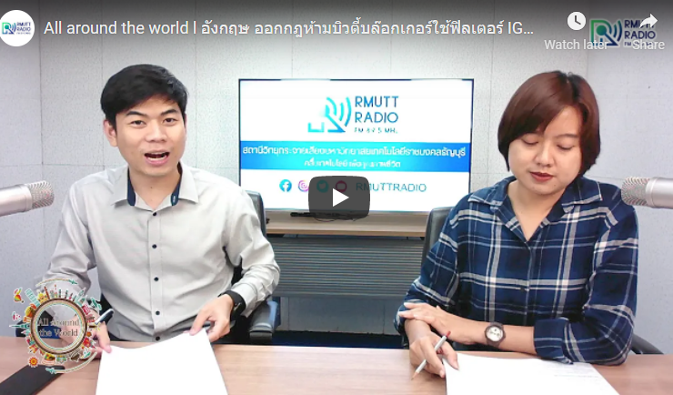 All around the world (ช่วงที่ 2) Topic ในช่วงที่ 2 – เทศกาลหิมะซับโปโร 2021 จัดแสดงผ่านออนไลน์ เพราะพิษโควิด-19 – อังกฤษ ออกกฎห้ามบิวตี้บล๊อกเกอร์ใช้ฟิลเตอร์ IG รีวิวเครื่องสำอาง – นักโบราณคดีพบโรงเบียร์โบราณเก่าแก่กว่า 5,000 ปี คาดใช้ประกอบพิธีอาบน้ำพระศพฟาโรห์ [21 กุมภาพันธ์ 2564] ดำเนินรายการโดย อาทิตยา ปักกะทานัง และปิยะพงษ์ เคนทวาย ออกอากาศทางสถานีวิทยุกระจายเสียงมหาวิทยาลัยเทคโนโลยีราชมงคลธัญบุรี FM 89.5 HHz ...