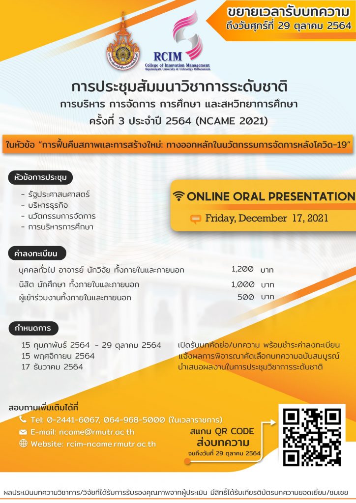 ในวันศุกร์ที่ ๑๗ ธันวาคม ๒๕๖๔ ในรูปแบบออนไลน์