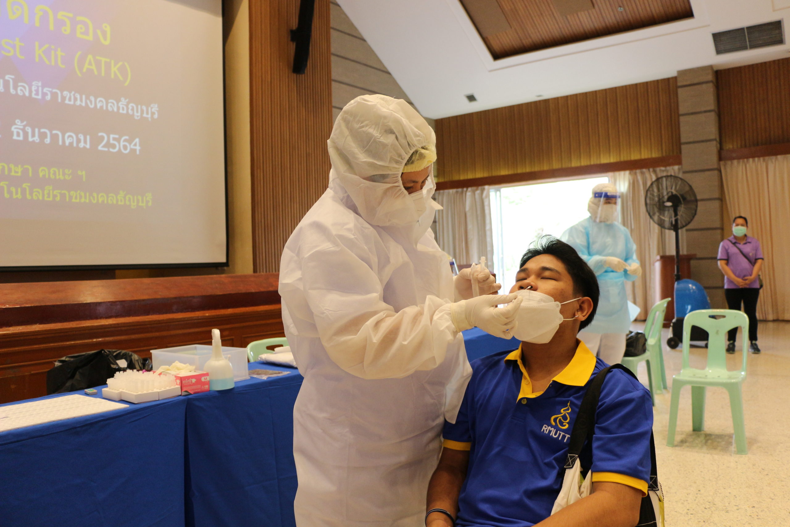 กองพัฒนานักศึกษา ร่วมกับ 12 คณะ จัดโครงการตรวจคัดกรองโควิด 19 ด้วยชุดตรวจ ATK ให้กับนักศึกษา มทร.ธัญบุรี Posted by radio895 Last Updated: November 14, 2021 กองพัฒนานักศึกษา ร่วมกับ 12 คณะ มหาวิทยาลัยเทคโนโลยีราชมงคลธัญบุรี ดำเนินการโครงการตรวจคัดกรองโควิด 19 ด้วยชุดตรวจ Antigen Test Kit (ATK) ให้กับนักศึกษามหาวิทยาลัยเทคโนโลยีราชมงคลธัญบุรี ระหว่างวันที่ 9 พฤศจิกายน – 2 ธันวาคม 2564 ณ ห้องประชุมสงค์ธนาพิทักษ์ อาคารสำนักงานอธิการบดี มหาวิทยาลัยเทคโนโลยีราชมงคลธัญบุรี อ.ธัญบุรี จ.ปทุมธานี ทั้งนี้ โครงการตรวจคัดกรองโควิด 19 ได้จัดขึ้น เพื่อรองรับมาตรการการเปิดภาคเรียนที่ 2 ปีการศึกษา 2564 โดยนักศึกษาที่จะเข้าเรียนภายในพื้นที่มหาวิทยาลัยเทคโนโลยีราชมงคลธัญบุรีได้นั้น ต้องได้รับวัคซีนโควิด 19 หรือมีผลการตรวจ RT-PCR หรือ ATK เป็นลบ ไม่เกิน 72 ชั่วโมง . ณัฐพล ดีอุต วิทยุราชมงคลธัญบุรี รายงาน ตรวจโควิด1ตรวจโควิด2ตรวจโควิด3ตรวจโควิด4ตรวจโควิด5ตรวจโควิด6 popular posts ราชมงคลธัญบุรี ชวนร่วมชมและเชียร์ทัพนักกีฬาในการแข่งขันกีฬามหาวิทยาลัยแห่งประเทศไทย ครั้งที่ 51 รอบคัดเลือก เขตภาคกลาง “ธัญบุรีเกมส์” 16 – 20 พ.ย.นี้ มทร.ธัญบุรี เตรียมจัดพิธีพระราชทานปริญญาบัตร ครั้งที่ 39 ประจำปีการศึกษา 2567 วันที่ 12 พ.ย.นี้ สถานีวิทยุราชมงคลธัญบุรี เปิดรับสมัคร เจ้าหน้าที่ประชาสัมพันธ์ Wellness talk (EP.90) I ความกดดันสู่พลังใจ : สร้าง Resilience ป้องกันสุขภาพจิตในรั้วมหาวิทยาลัย radio895 November 14, 2021