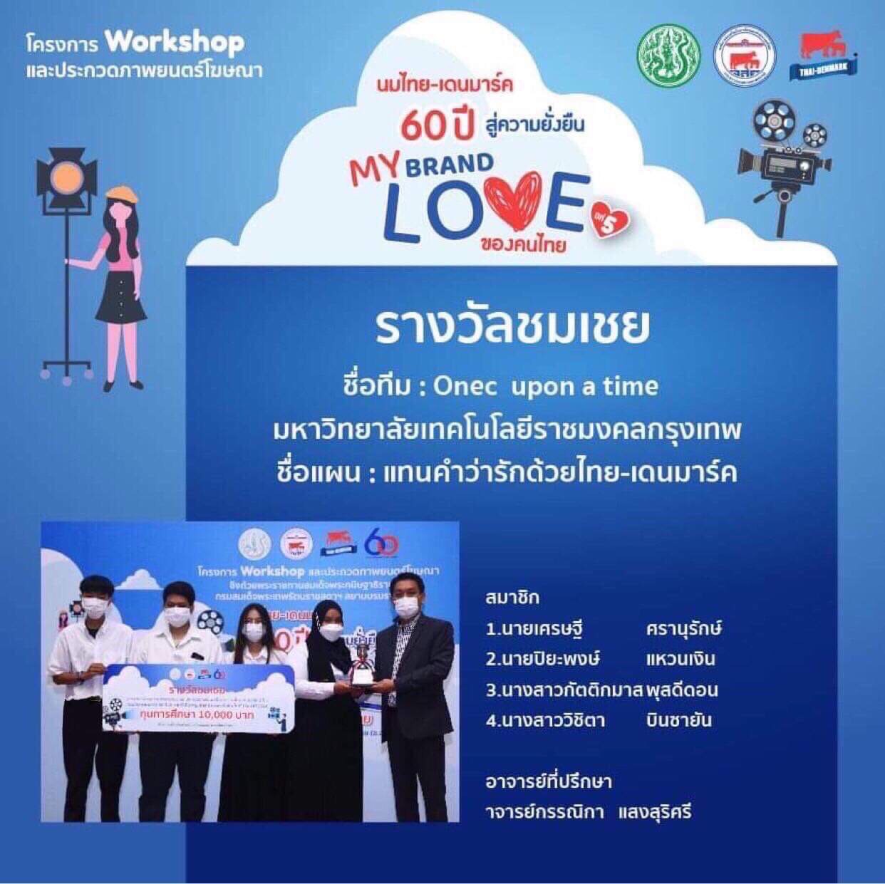 มทร.กรุงเทพ แสดงความยินดี กับนักศึกษาคณะบริหารธุรกิจ ในโอกาสได้รับรางวัล โครงการ Workshop และประกวดภาพยนตร์โฆษณา ปีที่ 5 “นมไทย-เดนมาร์ค 60 ปี สู่ความยั่งยืน My Brand Love ของคนไทย” Posted by radio895 Last Updated: November 18, 2021 มหาวิทยาลัยเทคโนโลยีราชมงคลกรุงเทพ ขอแสดงความยินดีกับ นายเศรษฐี ศรานุรักษ์ นายปิยะพงษ์ แหวนเงิน นางสาวกัตติกมาส พุสดีดอน และ นางสาววิชิตา บินซายัน นักศึกษาชั้นปีที่ 3 สาขาวิชาการตลาด คณะบริหารธุรกิจ ในโอกาสได้รับรางวัลชมเชย และทุนการศึกษา 10,000 บาท จากการเข้าร่วมแข่งขันโครงการ Workshop และประกวดภาพยนตร์โฆษณา ปีที่ 5 “นมไทย-เดนมาร์ค 60 ปี สู่ความยั่งยืน My Brand Love ของคนไทย” ชิงถ้วยพระราชทานสมเด็จพระกนิษฐา ธิราชเจ้า กรมสมเด็จพระเทพรัตนราชสุดาฯ สยามบรมราชกุมารี จัดโดย องค์การส่งเสริมกิจการโคนมแห่งประเทศไทย (อ.ส.ค.) โดยมี อาจารย์กรรณิการ์ แสงสุริศรี เป็นอาจารย์ที่ปรึกษา . ฐิติรัตน์ แสงบุญเกิด มหาวิทยาลัยเทคโนโลยีราชมงคลกรุงเทพ รายงาน popular posts ราชมงคลธัญบุรี ชวนร่วมชมและเชียร์ทัพนักกีฬาในการแข่งขันกีฬามหาวิทยาลัยแห่งประเทศไทย ครั้งที่ 51 รอบคัดเลือก เขตภาคกลาง “ธัญบุรีเกมส์” 16 – 20 พ.ย.นี้ สถานีวิทยุราชมงคลธัญบุรี เปิดรับสมัคร เจ้าหน้าที่ประชาสัมพันธ์ FIN TALK [EP.113] ชีวิตติดแอปฯ กับ Embedded Finance : ใช้จ่ายง่าย แต่หนี้ร้ายกว่าเดิม เพลินภาษานานาสาระ l ธรรมเนียมการฝังรก radio895 November 18, 2021