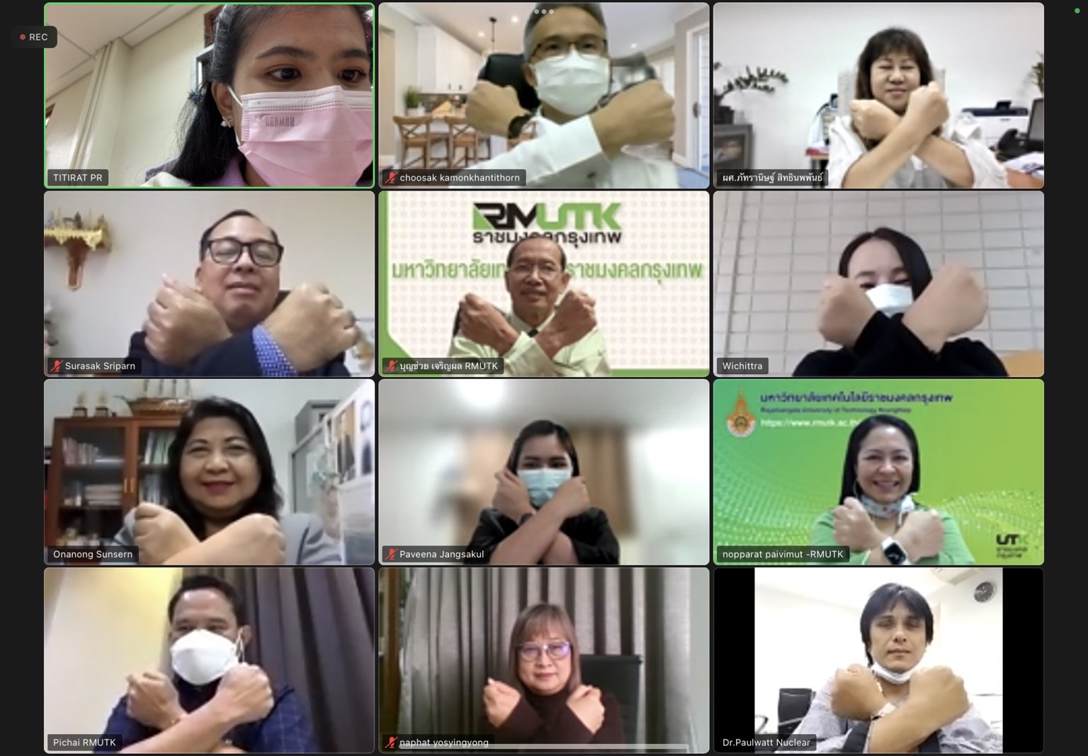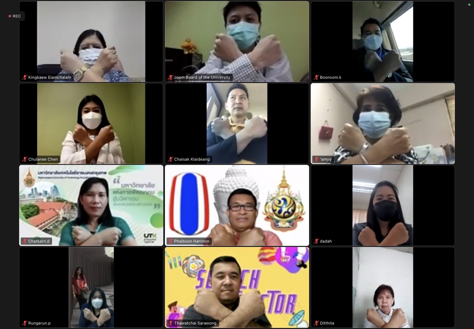 ซึ่งการประชุมในครั้งนี้ รศ.ดร.พิชัย จันทร์มณี รักษาราชการแทนอธิการบดี คณะผู้บริหาร และเจ้าหน้าที่ ได้ร่วมกันทำสัญลักษณ์มือเพื่อแสดงให้เห็นถึงการที่มหาวิทยาลัยจะร่วมต่อต้านการทุจริตคอรัปชั่นทุกรูปแบบ