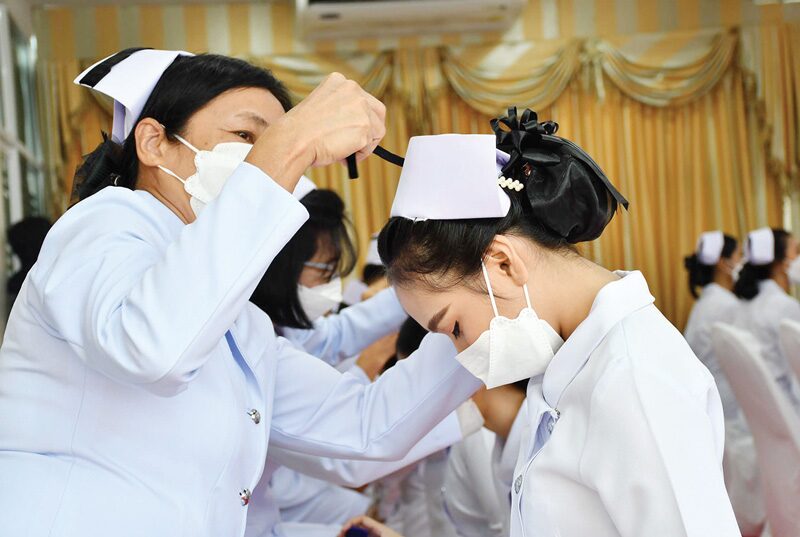 สำหรับปีการศึกษา 2564 มีผู้สำเร็จการศึกษาหลักสูตรพยาบาลศาสตรบัณฑิต รุ่นแรก จำนวน 65 คน คณะพยาบาลศาสตร์ จัดโครงการปัจฉิมนิเทศและมอบเข็มสัญลักษณ์ขึ้นเพื่อแสดงความยินดีและสร้างความภาคภูมิใจให้นักศึกษาที่สำเร็จการศึกษา สำหรับผู้สนใจสมัครเข้าศึกษาต่อคณะพยาบาลศาสตร์ มหาวิทยาลัยเทคโนโลยีราชมงคลธัญบุรี สอบถามรายละเอียดเพิ่มเติมโทร. 0-2549-3109 หรือทางเว็บไซต์ www.oreg.rmutt.ac.th