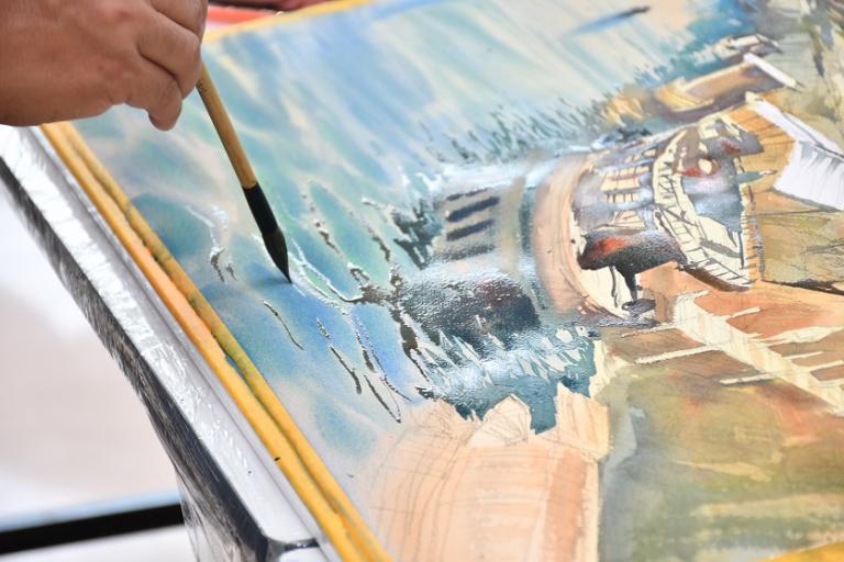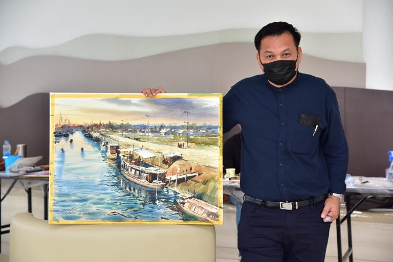 ขณะที่ อาจารย์บันชา ศรีวงศ์ราช ปรมาจารย์ศิลปินสีนำชั้นนำระดับโลกและเป็นศิษย์เก่าคณะศิลปกรรมศาสตร์ มทร.ธัญบุรี ในฐานะศิลปินที่เข้าร่วมโครงการ เปิดเผยว่า ตนเองได้สร้างสรรค์ผลงานวิถีชีวิตริมน้ำ โดยใช้เทคนิคสีน้ำเขียนเป็นชั้น โดยความน่าสนใจอยู่ที่การเลือกใช้โทนสีและองค์ประกอบภาพโดยเฉพาะรูปเรือ ทำให้เห็นภาพเมื่อครั้งในอดีตและความเป็นทุ่งหลวงรังสิตได้อย่างชัดเจน เป็นเอกภาพ