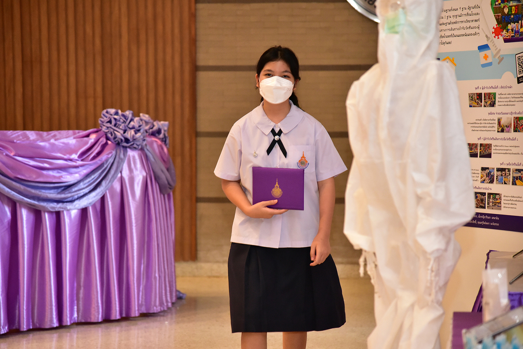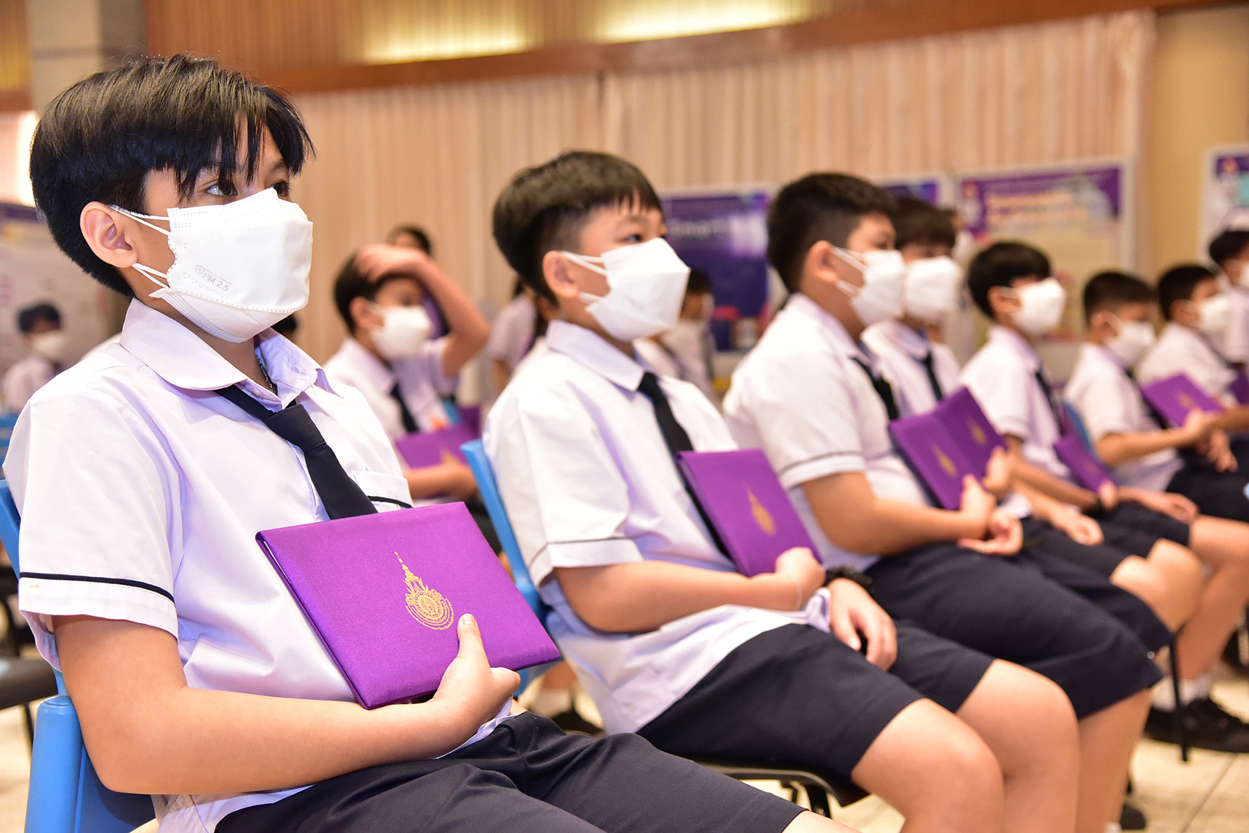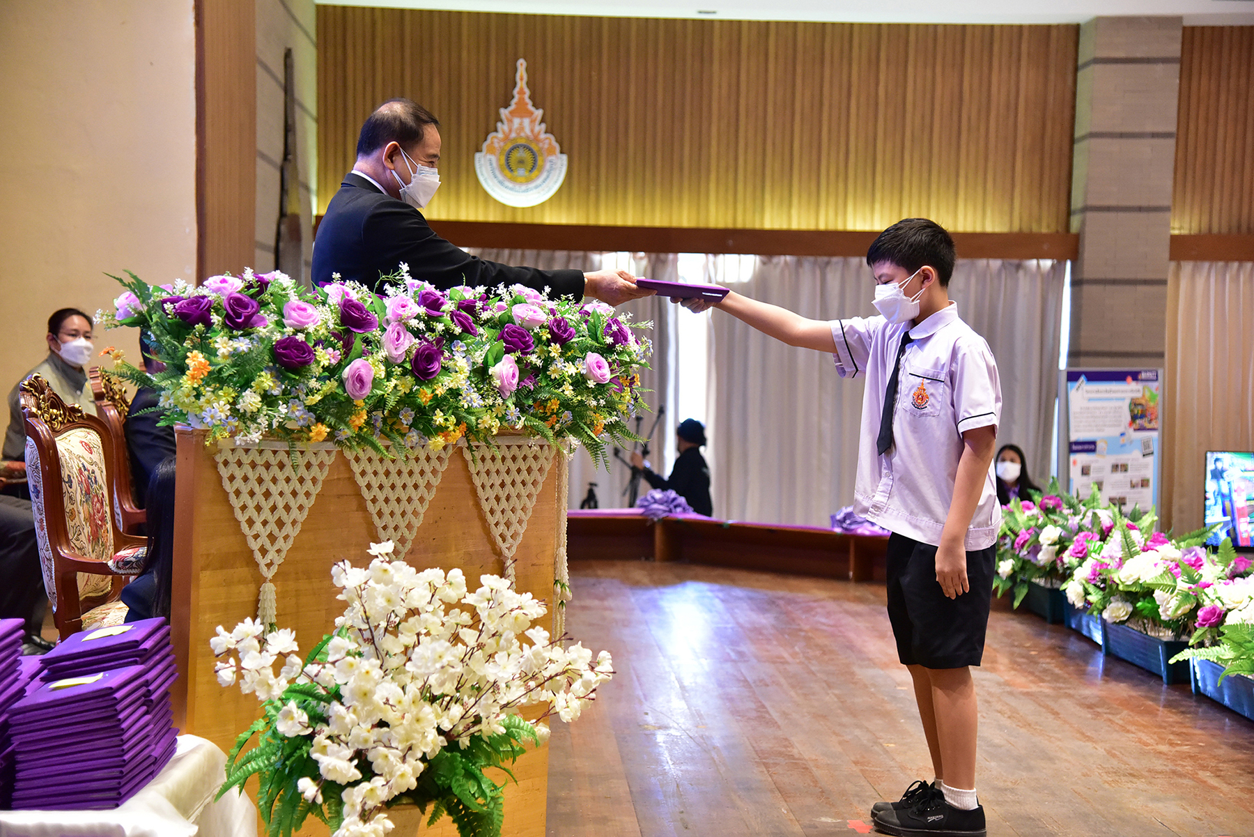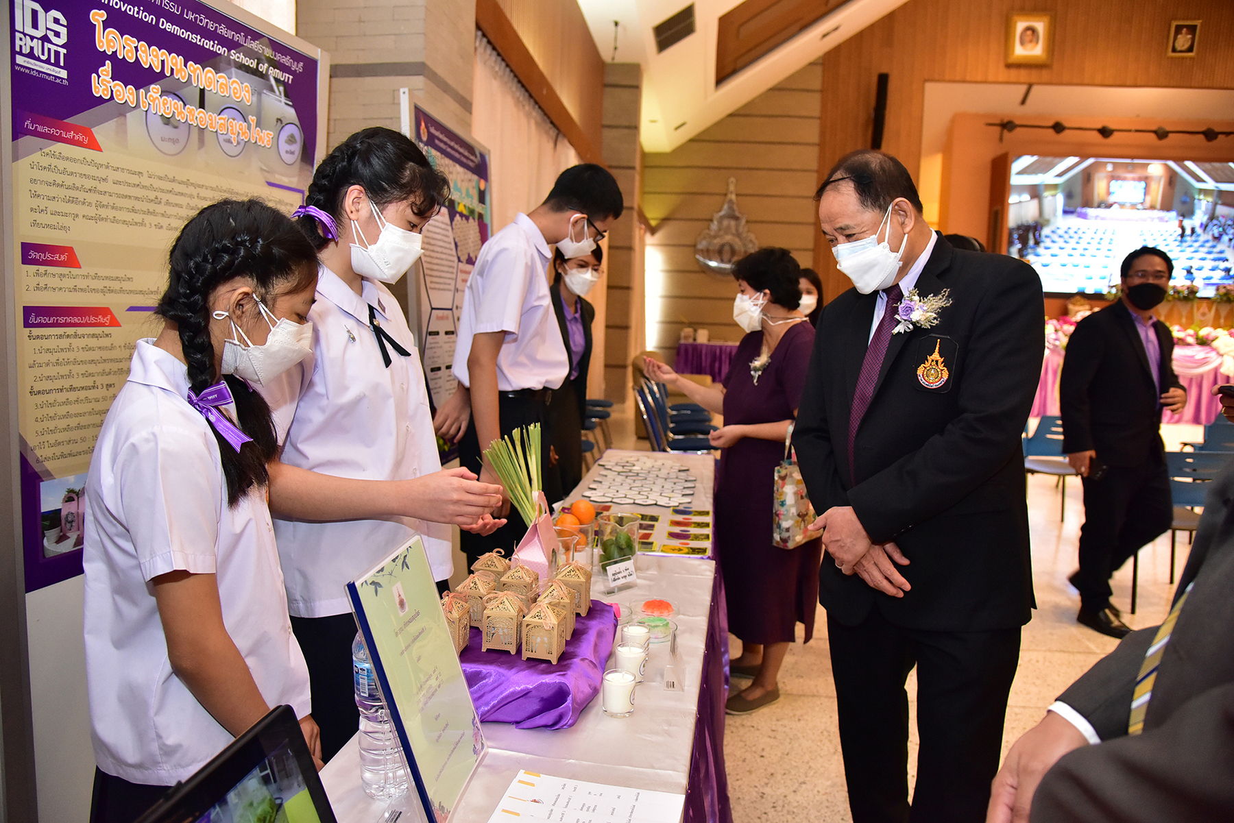 ด้าน นายนิติ วิทยาวิโรจน์ รักษาราชการแทน ผู้อำนวยการโรงเรียนสาธิตนวัตกรรม มทร.ธัญบุรี กล่าวว่า พิธีมอบประกาศนียบัตรและปัจฉิมนิเทศ ประจำปีการศึกษา 2564 มีนักเรียนชั้นประถมศึกษาปีที่ 6 เข้ารับประกาศนียบัตร 69 คน และชั้นมัธยมศึกษาปีที่ 3 29 คน รวมทั้งหมด 98 คน มีผลงานของนักเรียนที่ร่วมจัดแสดงและนำเสนอกว่า 23 ชิ้นงาน นับเป็นการวางรากฐานนักเรียนก้าวสู่การเป็นนวัตกรที่สามารถสร้างนวัตกรรมเพื่อพัฒนาประเทศต่อไปได้ จึงขอชื่นชมทุกความสามารถที่เกิดขึ้นของนักเรียนทุกคนในครั้งนี้
