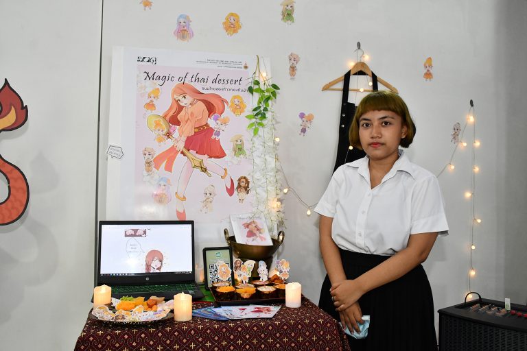 ด้านนางสาวปวีนา โควิน นักศึกษาผู้คิดค้นผลงาน กล่าวว่า ได้ออกแบบการ์ตูนออนไลน์เรื่อง “ขนมไทยสมัยอยุธยาตอนปลายของท้าวทองกีบม้า” เพื่อให้เด็กวัยรุ่นสมัยใหม่ได้ศึกษาข้อมูลด้านขนมไทยมากขึ้นและอนุรักษ์สิ่งนี้เอาไว้ โดยเผยแพร่ผ่านแอปพลิเคชัน Line Webtoon ที่มียอดผู้ใช้งานในประเทศไทยมากกว่า 16,800,000 คน นำเสนอในรูปแบบการ์ตูน 2 มิติ ซึ่งถือเป็นการเพิ่มช่องทางการศึกษาหาข้อมูลเรื่องขนมไทยแบบใหม่ได้อีกด้วย