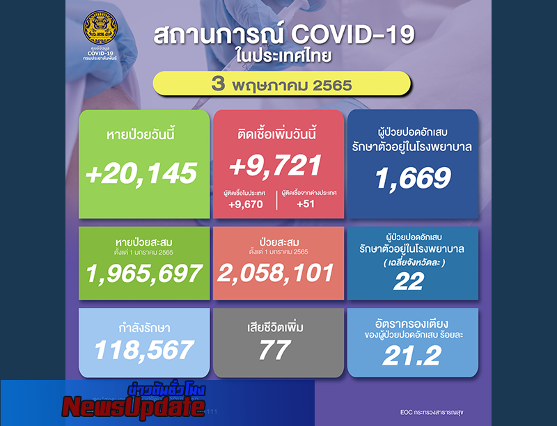 11.00 กรมการแพทย์ เผยแนวโน้มผู้ป่วยโควิด 19 ใน รพ.ดีขึ้น สถานพยาบาลทยอยปิดวอร์ดผู้ป่วยโควิด 19 เตรียมปรับเกณฑ์การรักษา