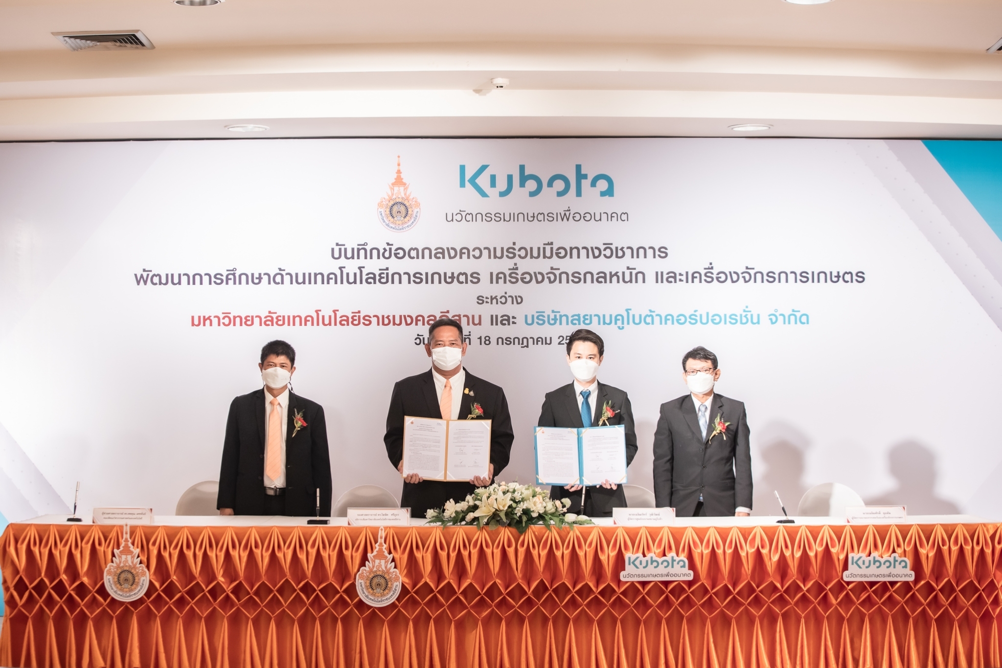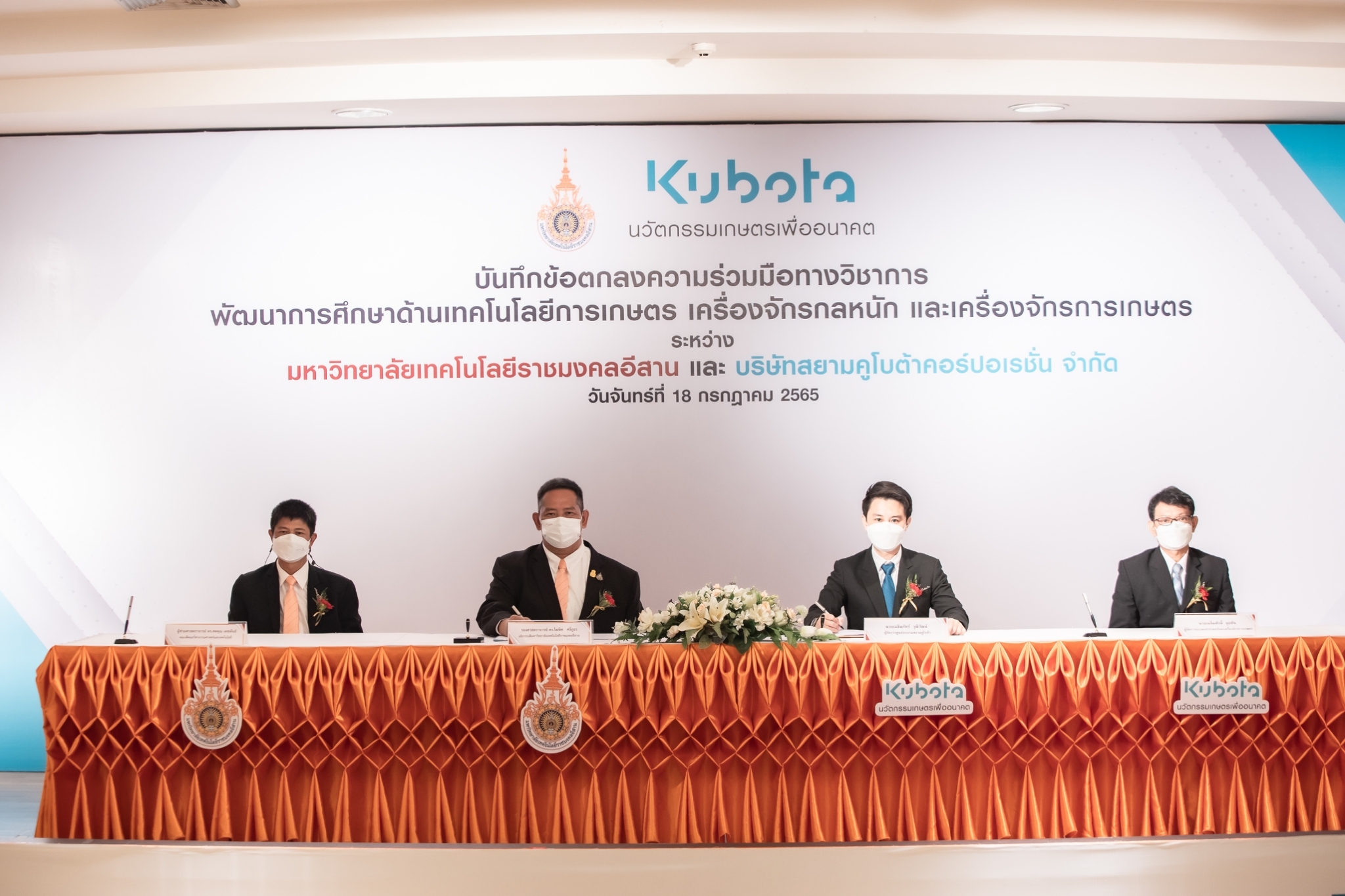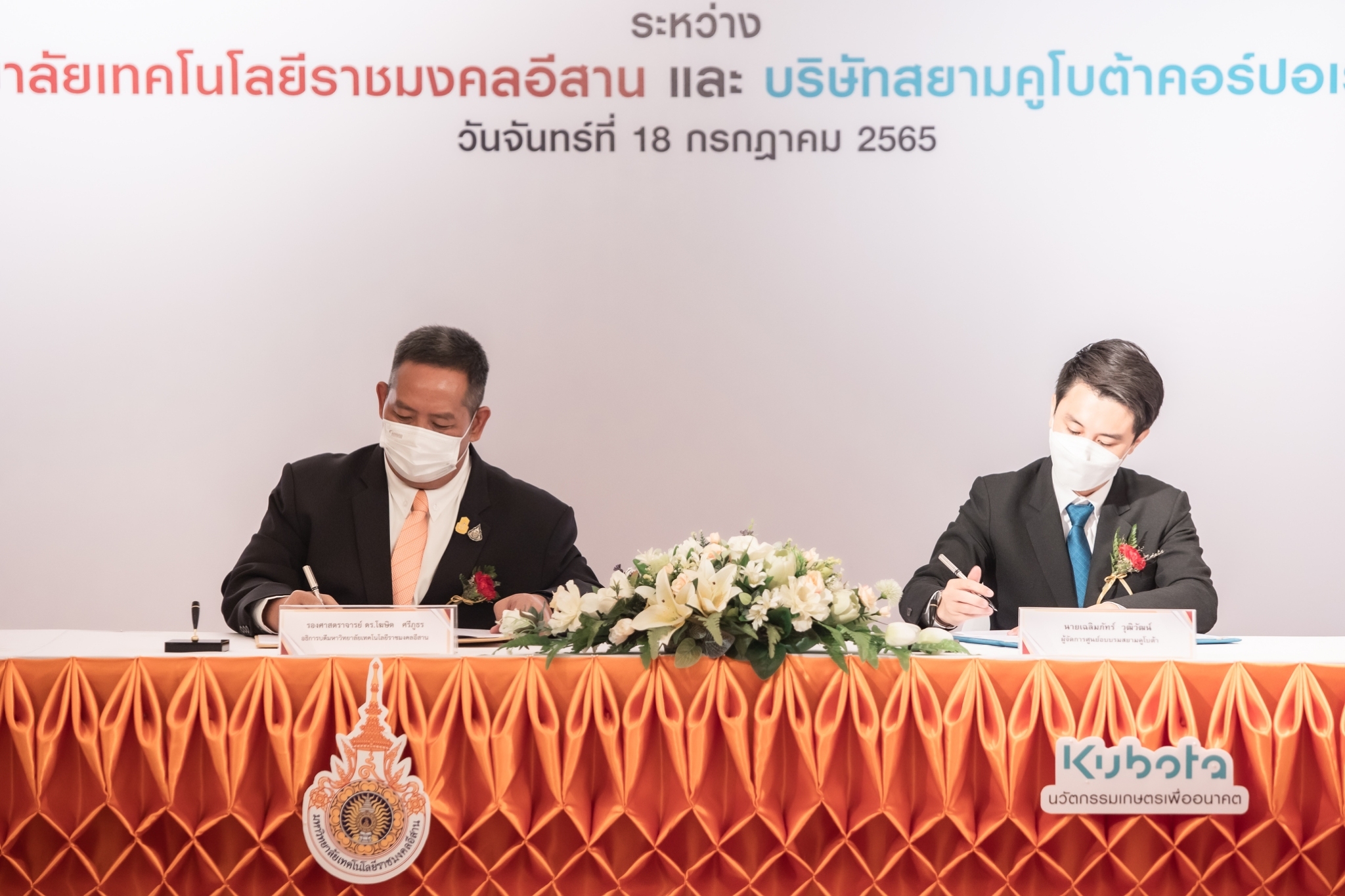 วันที่ 18 กรกฎาคม 2565 มหาวิทยาลัยเทคโนโลยีราชมงคลอีสาน โดย วิทยาลัยนวัตกรรมวิชาชีพ จัดพิธีลงนามบันทึกข้อตกลงความร่วมมือทางวิชาการ ว่าด้วย การดำเนินการพัฒนาการศึกษาด้านเทคโนโลยีการเกษตร และเครื่องจักรกลหนักและเครื่องจักรการเกษตร ระหว่าง มหาวิทยาลัยเทคโนโลยีราชมงคลอีสาน กับ บริษัท สยามคูโบต้า คอร์ปอเรชั่น จำกัด โดยมีอาจารย์กัมปนาท ถ่ายสูงเนิน หัวหน้าวิทยาลัยนวัตกรรมวิชาชีพ กล่าวรายงานวัตถุประสงค์การดำเนินงาน และได้รับเกียรติจาก รองศาตราจารย์ ดร.โฆษิต ศรีภูธร อธิการบดี มทร.อีสาน กล่าวเปิดงานและกล่าวต้อนรับคณะผู้บริหารจาก บริษัท สยามคูโบต้า คอร์ปอเรชั่น จำกัด นำโดย นายเฉลิมภัทร์ วุฒิวัฒน์ ผู้จัดการศูนย์อบรมสยามคูโบต้า พร้อมลงนามบันทึกข้อตกลงความร่วมมือทางวิชาการร่วมกัน โดยมีวัตถุประสงค์เพื่อการพัฒนาเทคโนโลยีทางการเกษตรและพัฒนาทักษะการใช้ การบำรุงรักษาและซ่อมบำรุงเครื่องจักรกลหนักและเครื่องจักรกลทางการเกษตร และร่วมกันผลักดันในการจัดตั้งศูนย์อบรมและสอบใบขับขี่สำหรับรถแทรกเตอร์ต่อไป