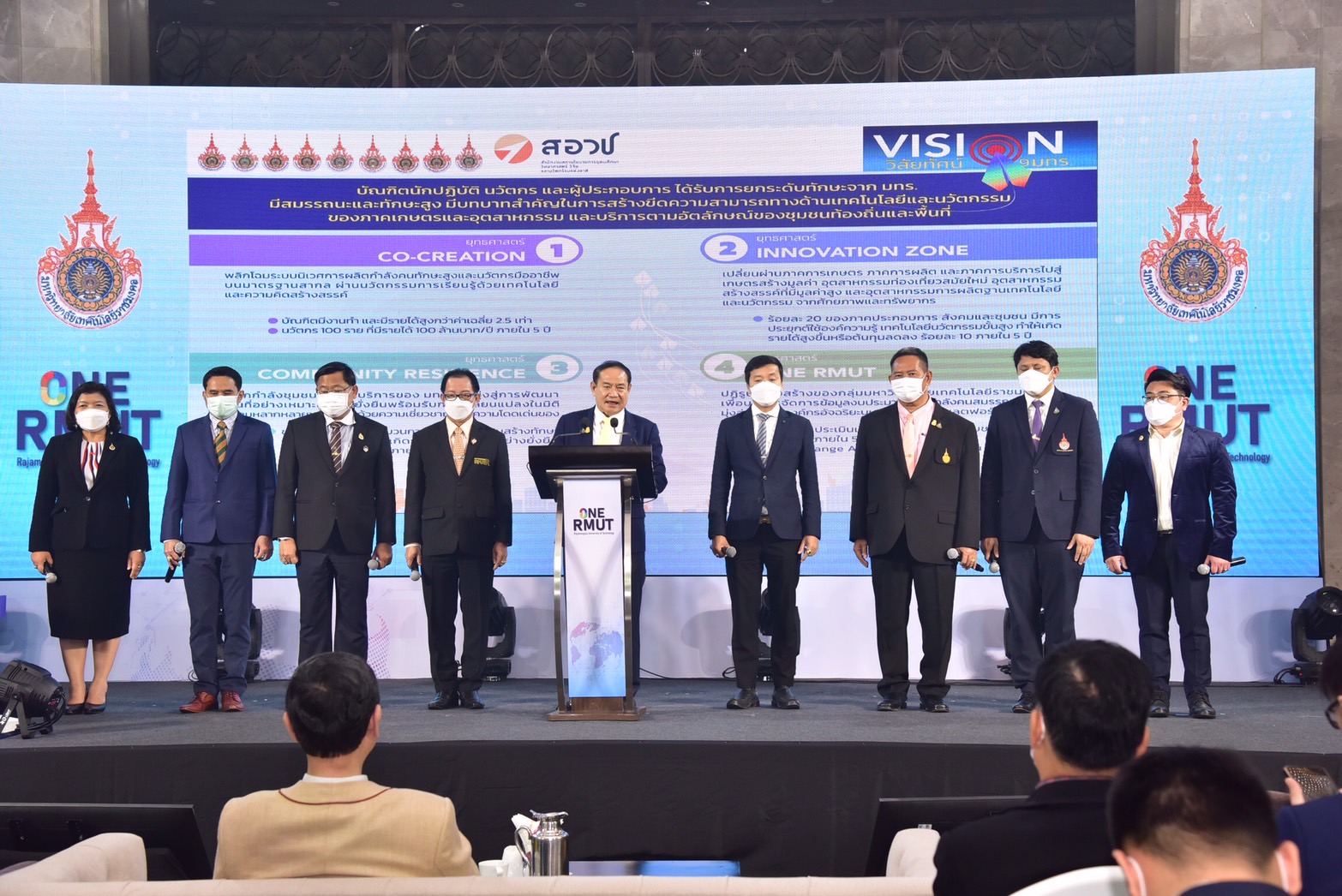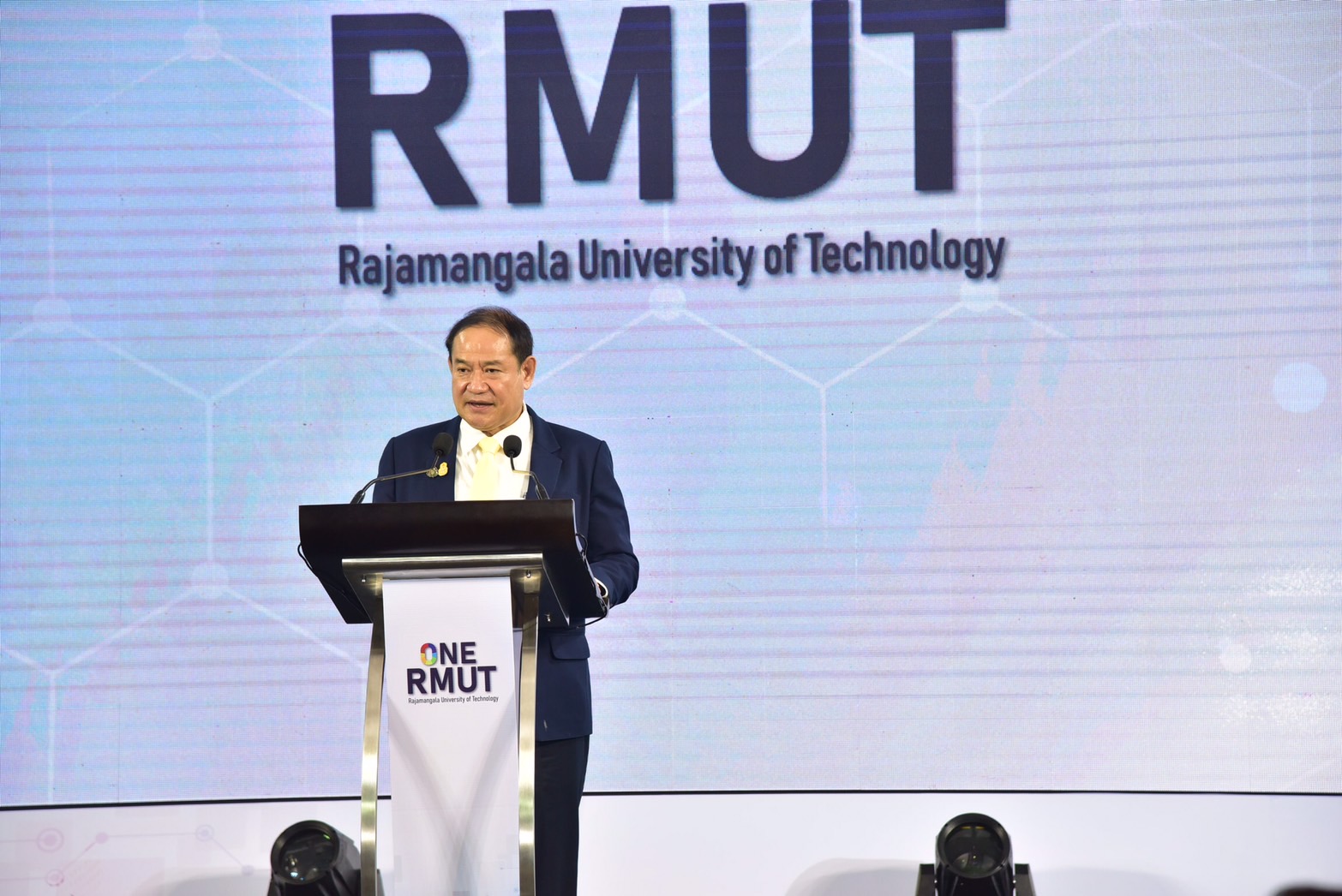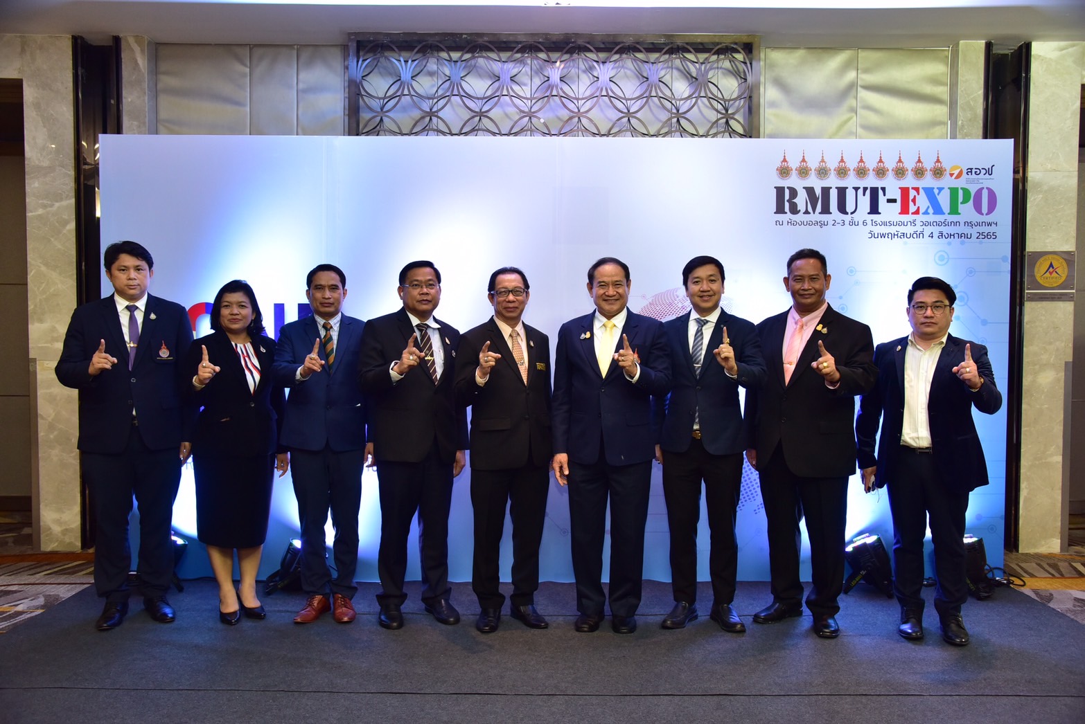 รศ.ดร.สมหมาย ผิวสอาด ประธานที่ประชุมอธิการบดีมหาวิทยาลัยเทคโนโลยีราชมงคล อธิการบดีมหาวิทยาลัยเทคโนโลยีราชมงคลธัญบุรี กล่าวว่า RMUT EXPO เป็นงานมหกรรมของกลุ่มมหาวิทยาลัยเทคโนโลยีราชมงคลทั้ง 9 แห่ง ที่ได้ร่วมกันดำเนินการ แสดงจุดร่วม วิสัยทัศน์ ยุทธศาสตร์และผลงานสำคัญต่างๆที่เกิดขึ้นและได้รับความร่วมมือที่ดีจากสำนักงานสภานโยบายการอุดมศึกษา วิทยาศาสตร์ วิจัยและนวัตกรรมแห่งชาติ หรือ สอวช. ดำเนินโครงการ “ศึกษาวิจัยเชิงนโยบายการปรับเปลี่ยนบทบาทมหาวิทยาลัยเพื่อขับเคลื่อนยุทธศาสตร์ของประเทศ University Transformation for National Projects กลุ่มมหาวิทยาลัยเทคโนโลยีราชมงคล” จัดทำแผนยุทธศาสตร์มหาวิทยาลัยเทคโนโลยีราชมงคล เพื่อขับเคลื่อนประเด็นสำคัญของประเทศ พ.ศ. 2566 – 2570 ให้เป็นแผนที่นำทาง Roadmap 5 ปี สำหรับการปรับเปลี่ยนบทบาทกลุ่มมหาวิทยาลัย และออกแบบกลไกการปฏิบัติ สำหรับปรับเปลี่ยนบทบาทกลุ่มมหาวิทยาลัยให้เหมาะสมกับการยกระดับและพลิกโฉมอุตสาหกรรม สังคมและชุมชนท้องถิ่น ภายใต้แพลตฟอร์มการทำงานร่วมกัน “ONE-RMUT”
