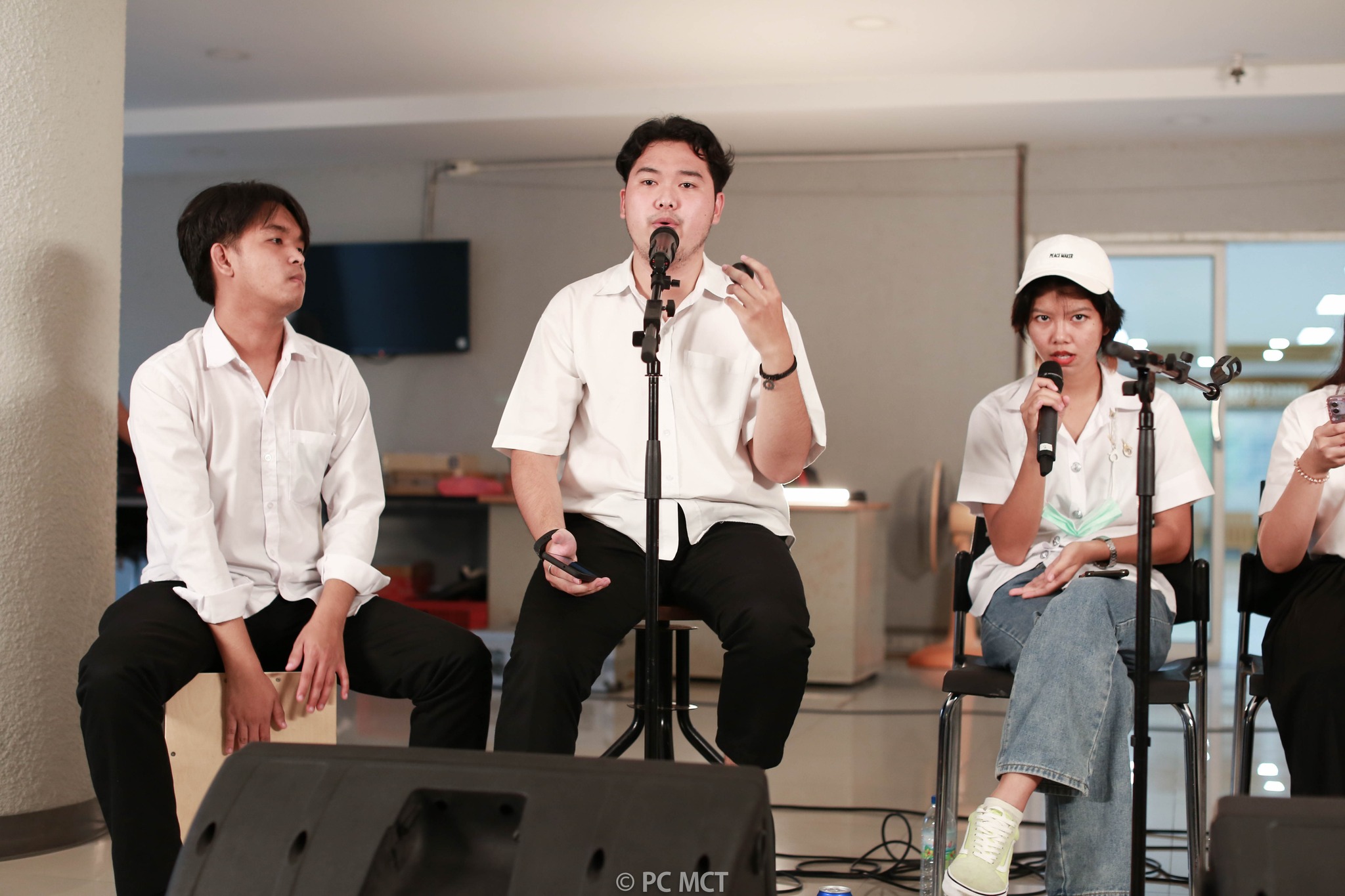 คณะเทคโนโลยีสื่อสารมวลชน มทร.ธัญบุรี จัดงาน MASS ZONE นักศึกษาร่วมแสดงดนตรีโฟล์กซอง Posted by radio895 Last Updated: September 12, 2022 คณะเทคโนโลยีสื่อสารมวลชน มหาวิทยาลัยเทคโนโลยีราชมงคลธัญบุรี จัดโครงการพัฒนาสมรรถนะนักศึกษาตามบัณฑิตที่พึงประสงค์ 5H ปีการศึกษา 2565 โดยเมื่อวันอังคารที่ 6 กันยายน 2565 เวลา 16.30 – 18.30 น. ณ ลานชั้น 1 คณะเทคโนโลยีสื่อสารมวลชน สโมสรนักศึกษาได้จัดงาน MASS ZONE “พื้นที่โชว์ของสำหรับเด็กสื่อสารมวลชน” มีวงดนตรีโฟล์กซองจากนักศึกษาคณะเทคโนโลยีสื่อสารมวลชนมาสร้างร่วมสร้างสีสัน ซึ่งแม้จะมีฝนตก ต้องจัดงานภายในอาคาร แต่บรรยากาศยังคึกคัก อบอุ่นและคับคั่งไปด้วยนักศึกษาที่มาร่วมฟังเพลง . เรียบเรียงโดย อาทิตยา ปักกะทานัง รายงานโดย ณัฐพล ดีอุต สื่อสาร1สื่อสาร2สื่อสาร3สื่อสาร4สื่อสาร5สื่อสาร6สื่อสาร7 popular posts ราชมงคลธัญบุรี ชวนร่วมชมและเชียร์ทัพนักกีฬาในการแข่งขันกีฬามหาวิทยาลัยแห่งประเทศไทย ครั้งที่ 51 รอบคัดเลือก เขตภาคกลาง “ธัญบุรีเกมส์” 16 – 20 พ.ย.นี้ FIN TALK [EP.113] ชีวิตติดแอปฯ กับ Embedded Finance : ใช้จ่ายง่าย แต่หนี้ร้ายกว่าเดิม มทร.ธัญบุรี เตรียมจัดพิธีพระราชทานปริญญาบัตร ครั้งที่ 39 ประจำปีการศึกษา 2567 วันที่ 12 พ.ย.นี้ สถานีวิทยุราชมงคลธัญบุรี เปิดรับสมัคร เจ้าหน้าที่ประชาสัมพันธ์ radio895 September 12, 2022