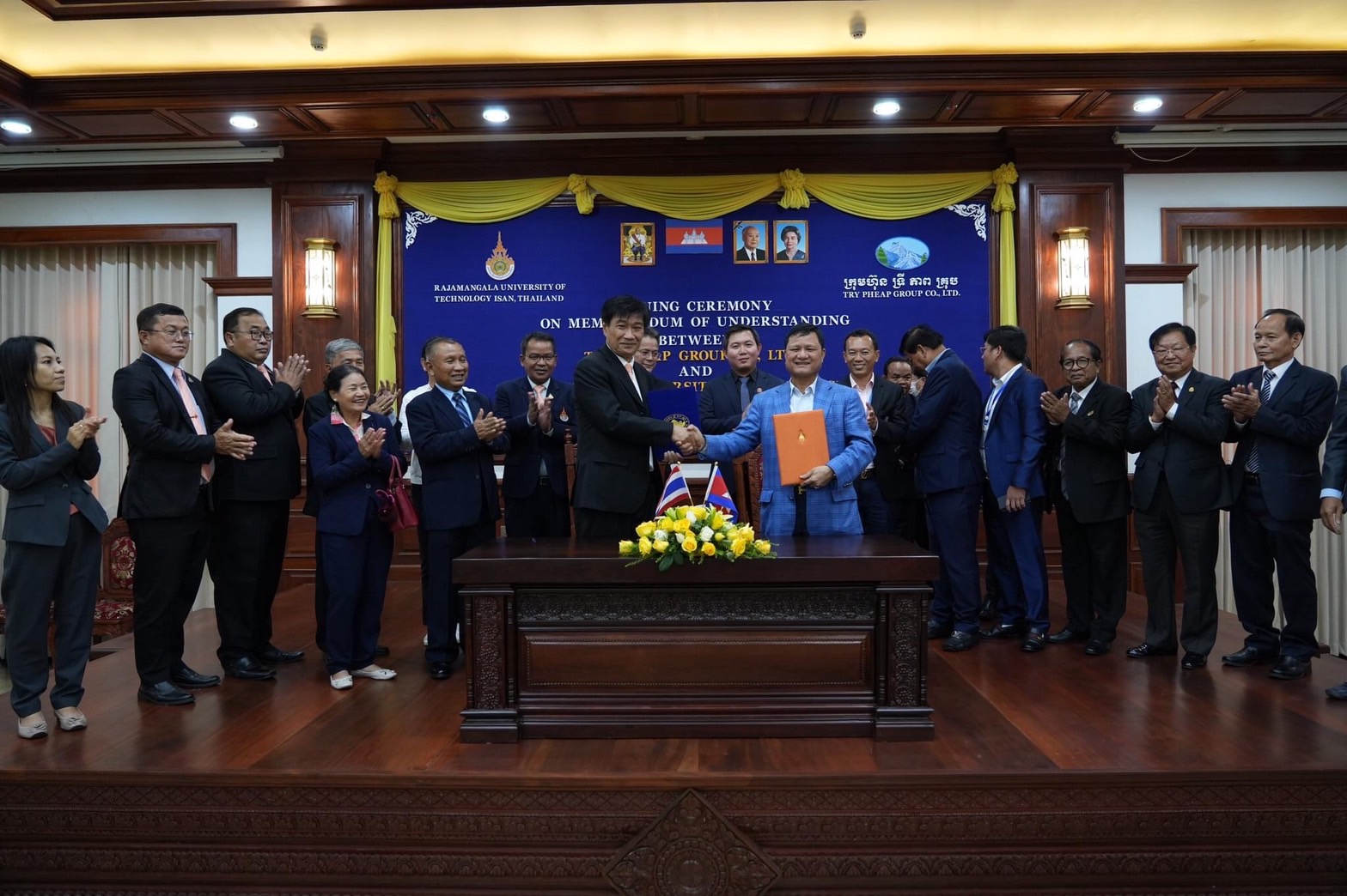 สำหรับในการเยี่ยมเยือนครั้งนี้ ได้มีการลงนามบันทึกข้อตกลงความร่วมมือทางวิชาการ วิจัย และบริการวิชาการ ในการส่งเสริมการพัฒนากำลังคน การวิจัย ร่วมถึงการสนับสนุนเทคโนโลยีและนวัตกรรม ที่ตอบโจทย์ความต้องการในการพัฒนาอุตสาหกรรมเป้าหมายของประเทศกัมพูชา อีกครั้ง ซึ่งการดำเนินกิจกรรมทั้งหมดจะสอดคล้องกับจุดเน้นหลักของ มทร.อีสาน ทั้ง 3 ด้าน คือ Logistics and Transportation ด้าน Agricultural Technology and Food และด้าน Health and Tourism ที่มีเทคโนโลยีนวัตกรรม และความเป็นผู้ประกอบการเป็นฐาน โดยทางศูนย์กลางนครราชสีมา พร้อมให้ความร่วมมือด้านโลจิสติกส์ และการบริหารจัดการท่าเรือบก วิทยาเขตขอนแก่น และวิทยาเขตสุรินทร์ พร้อมให้การสนับสนุนวิชาการ วิจัย ด้านการท่องเที่ยว และวิทยาเขตสกลนคร วิทยาเขตสุรินทร์ พร้อมส่งบุคลากรร่วมทำวิจัยและถ่ายทอดนวัตกรรมด้านการเกษตร และสมุนไพร ซึ่งกิจกรรมที่จะเกิดขึ้นต่อจากนี้เป็นส่วนหนึ่งที่สำคัญต่อการเผยแพร่ชื่อเสียงของมหาวิทยาลัยฯ ให้เป็นที่รู้จักและยอมรับในระดับสากลต่อไป
