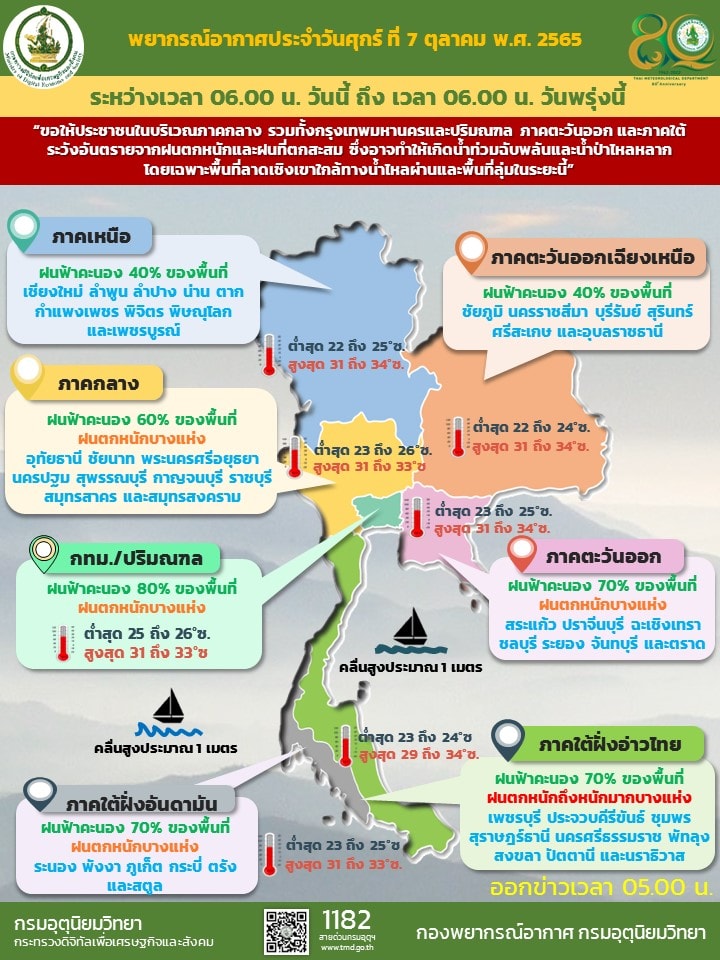 08.00 กรมอุตุนิยมวิทยา ชี้ ภาคเหนือและอีสานมีฝนน้อย ภาคตะวันออก ภาคใต้ และอ่าวไทย ฝนหนักบางแห่ง – กทม.และปริมณฑลมีฝนร้อยละ 80 ของพื้นที่
