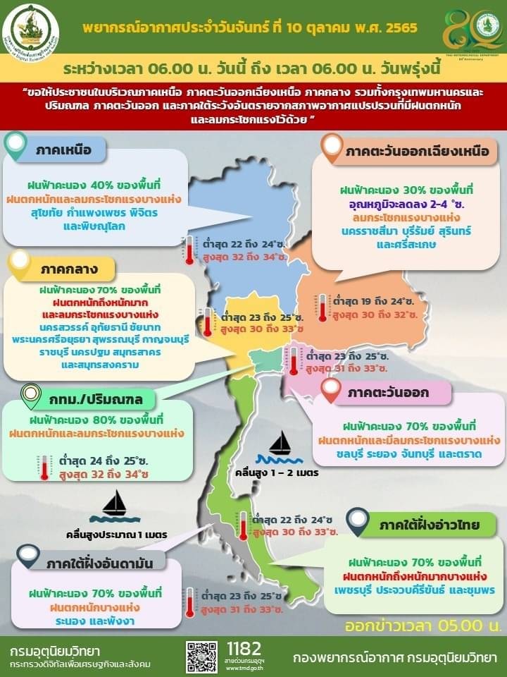 08.00 อากาศแปรปรวนบริเวณประทศไทยตอนบนและฝนตกหนักบริเวณภาคใต้ กรุงเทพฯ-ปริมณฑล มีฝนร้อยละ 80 ของพื้นที่