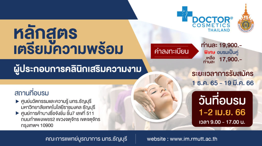 คณะการแพทย์บูรณาการ มทร.ธัญบุรี เปิดรับสมัครเข้าร่วมอบรมหลักสูตรเตรียมความพร้อมผู้ประกอบการคลินิกเสริมความงาม Posted by radio895 Last Updated: December 19, 2022 คณะการแพทย์บูรณาการ มหาวิทยาลัยเทคโนโลราชมงคลธัญบุรี ร่วมกับ Doctor Cosmetic Thailand เปิดอบรมหลักสูตรเตรียมความพร้อมผู้ประกอบการคลินิกเสริมความงาม โดยมีหัวข้อการอบรม ได้แก่ โอกาสสำหรับธุรกิจคลินิกเสริมความงาม, การวางแผนเชิงกลยุทธ์สำหรับธุรกิจคลินิกเสริมความงาม, การวางแผนการตลาดบริการสำหรับผู้ประกอบการคลินิกเสริมความงาม, การวางแผนการปฏิบัติงานสำหรับผู้ประกอบการคลินิกเสริมความงาม, การวางแผนการบริหารงานทรัพยากรมนุษย์สำหรับผู้ประกอบการคลินิกเสริมความงาม, การวางแผนระบบบัญชี ภาษี และการบริหารการเงินสำหรับผู้ประกอบการคลินิกเสริมความงาม, การวิเคราะห์และจัดการความเสียง และคลินิกธุรกิจ /สถานที่จัดอบรม ศูนย์นวัตกรรมและความรู้ มทร.ธัญบุรี มหาวิทยาลัยเทคโนโลยีราชมงคลธัญบุรี ศูนย์การค้าบางซื่อจังชั่น ชั้น 7 จตุจักร กทม. รับสมัครตั้งแต่บัดนี้ – 19 มี.ค.2566 วันที่อบรม 1-2 เม.ย.2566 เวลา 9.00 – 17.00 น. ค่าอบรมท่านละ 19,900 บาท หากอบรมเป็นคู่ เหลือท่านละ 17,900 บาท สอบถามข้อมูลหลักสูตรการอบรมได้ที่ 089-944-1346 และ 081-375-8333 . เรียบเรียงโดย อาทิตยา ปักกะทานัง รายงานโดย ณัฐพล ดีอุต popular posts ราชมงคลธัญบุรี ชวนร่วมชมและเชียร์ทัพนักกีฬาในการแข่งขันกีฬามหาวิทยาลัยแห่งประเทศไทย ครั้งที่ 51 รอบคัดเลือก เขตภาคกลาง “ธัญบุรีเกมส์” 16 – 20 พ.ย.นี้ FIN TALK [EP.113] ชีวิตติดแอปฯ กับ Embedded Finance : ใช้จ่ายง่าย แต่หนี้ร้ายกว่าเดิม มทร.ธัญบุรี เตรียมจัดพิธีพระราชทานปริญญาบัตร ครั้งที่ 39 ประจำปีการศึกษา 2567 วันที่ 12 พ.ย.นี้ สถานีวิทยุราชมงคลธัญบุรี เปิดรับสมัคร เจ้าหน้าที่ประชาสัมพันธ์ radio895 December 19, 2022