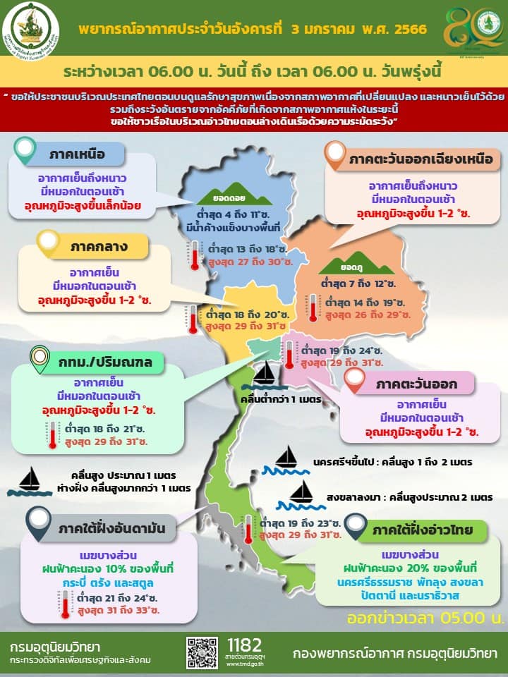 10.00 ข่าวราชมงคล // ประเทศไทยตอนบนอุณหภูมิสูงขึ้น 1-2 องศาเซลเซียสภาคใต้มีฝนฟ้าคะนองบางแห่ง ด้านกรุงเทพและปริมณฑลอากาศเย็นกับมีหมอกในตอนเช้า