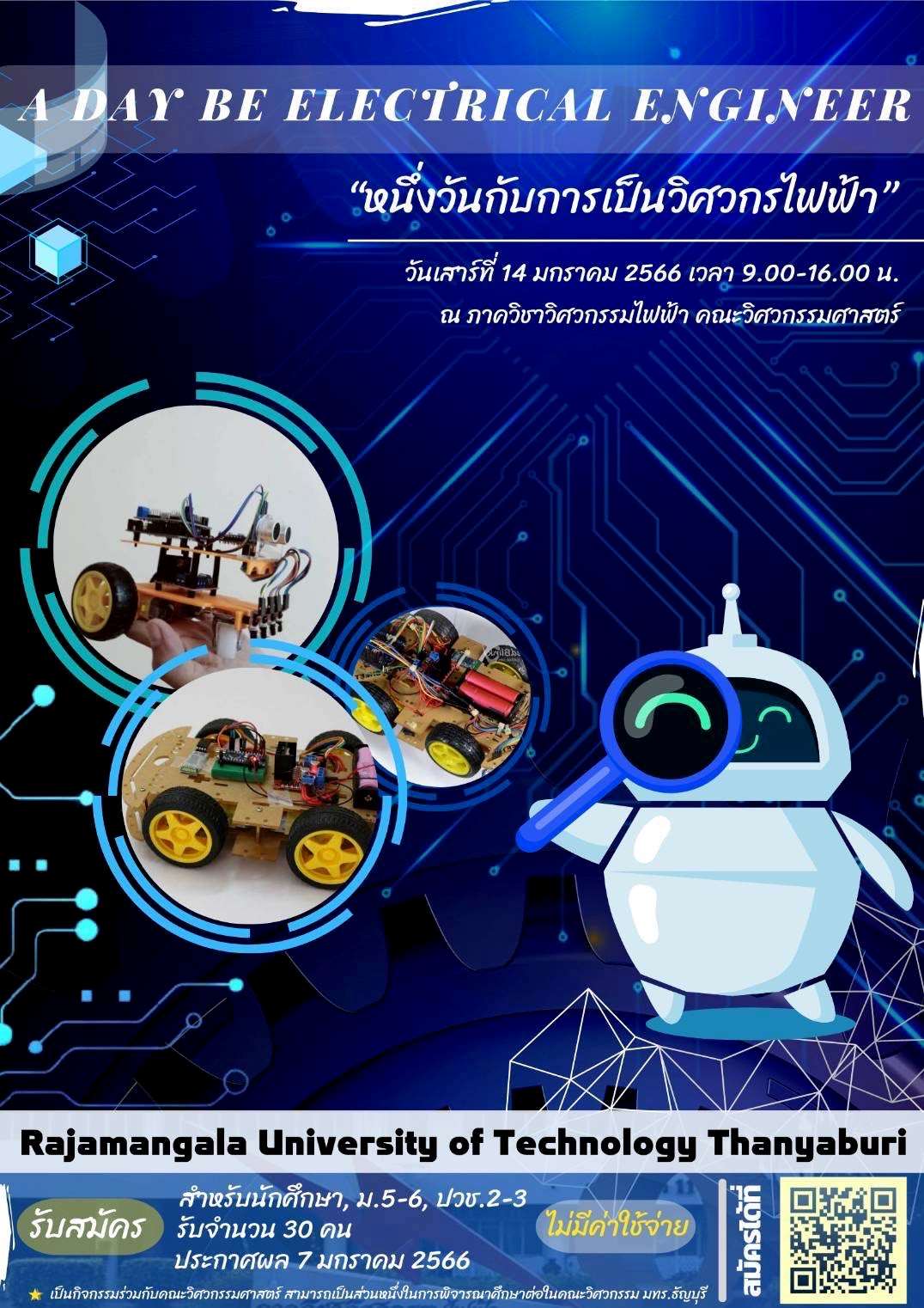 คณะวิศวกรรมศาสตร์ มทร.ธัญบุรี ชวนนักเรียนนักศึกษาที่สนใจอาชีพวิศวกร ร่วมค้นหาตัวเองกับค่ายกิจกรรม “หนึ่งวันกับการเป็นวิศกรไฟฟ้า” ไม่มีค่าใช้จ่าย Posted by radio895 Last Updated: January 6, 2023 คณะวิศวกรรมศาสตร์ มหาวิทยาลัยเทคโนโลยีราชมงคลธัญบุรี ชวนนักเรียนชั้นมัธยมศึกษาปีที่ 5-6 นักศึกษา ปวช. ที่อยากค้นหาตนเองในอาชีพวิศวกร โดยเฉพาะวิศวกรไฟฟ้า เข้าค่ายกิจกรรม หนึ่งวันกับการเป็นวิศกรไฟฟ้า โดยไม่มีค่าใช้จ่าย ในวันเสาร์ที่ 14 มกราคม 2566 เวลา 9.00 – 16.00 น. ณ ภาควิชาวิศวกรรมไฟฟ้า คณะวิศวกรรมศาสตร์ มหาวิทยาลัยเทคโนโลยีราชมงคลธัญบุรี คลอง 6 ธัญบุรี จ.ปทุมธานี สอบถามข้อมูลการสมัครได้ที่ เฟซบุ๊ก Engineering RMUTT . เรียบเรียงโดย อาทิตยา ปักกะทานัง รายงานโดย ภานุมาศ หัฐบูล popular posts ราชมงคลธัญบุรี ชวนร่วมชมและเชียร์ทัพนักกีฬาในการแข่งขันกีฬามหาวิทยาลัยแห่งประเทศไทย ครั้งที่ 51 รอบคัดเลือก เขตภาคกลาง “ธัญบุรีเกมส์” 16 – 20 พ.ย.นี้ สถานีวิทยุราชมงคลธัญบุรี เปิดรับสมัคร เจ้าหน้าที่ประชาสัมพันธ์ FIN TALK [EP.113] ชีวิตติดแอปฯ กับ Embedded Finance : ใช้จ่ายง่าย แต่หนี้ร้ายกว่าเดิม เพลินภาษานานาสาระ l ธรรมเนียมการฝังรก radio895 January 6, 2023
