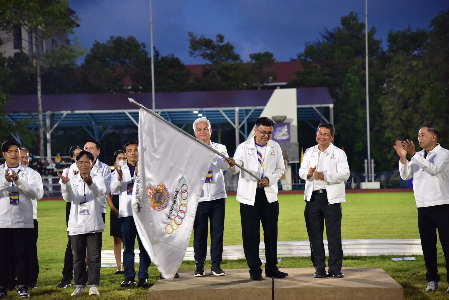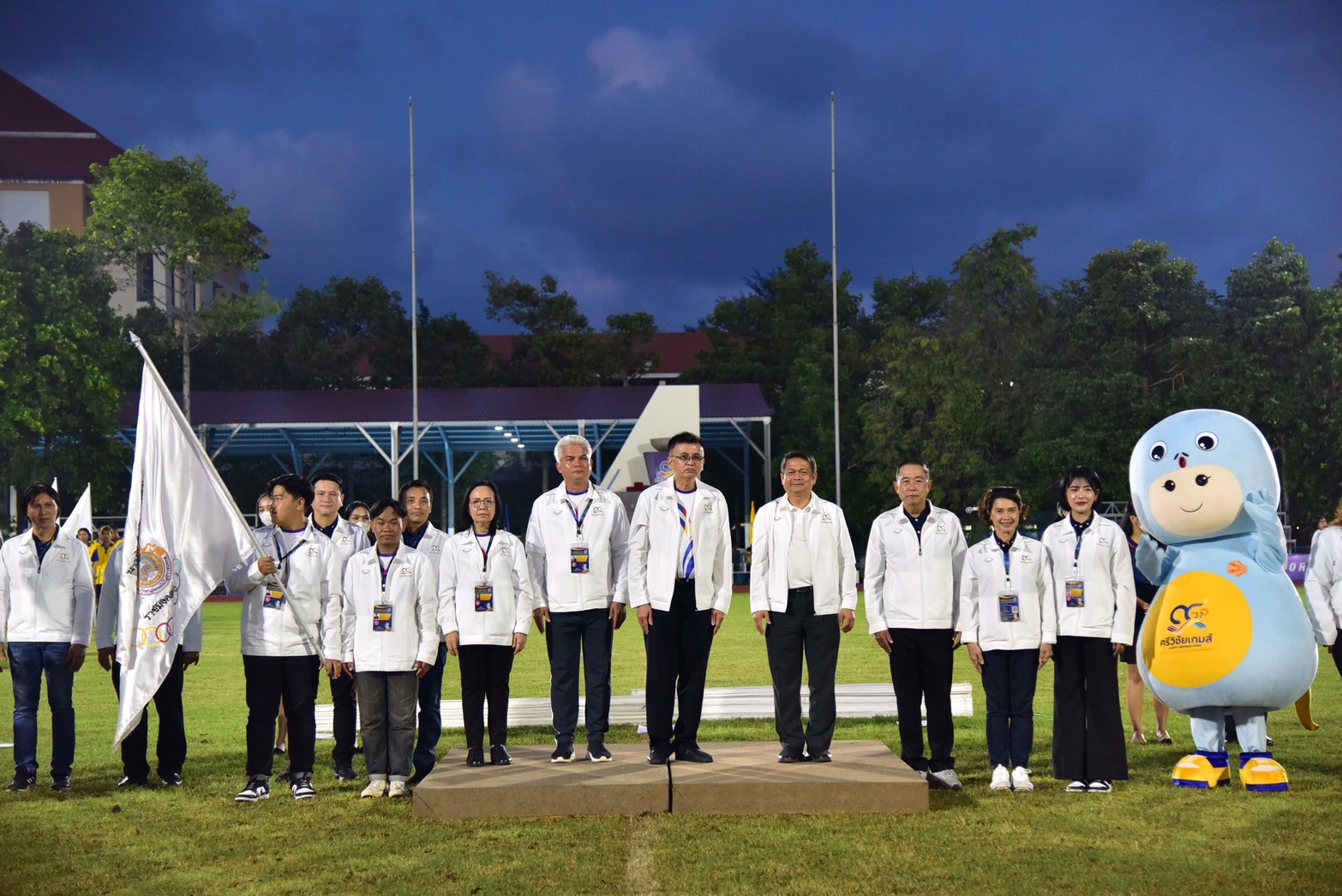 สำหรับเจ้าเหรียญทองในการแข่งขันครั้งนี้ ได้แก่ มหาวิทยาลัยเทคโนโลยีราชมงคลธัญบุรี ซึ่งนายวิรัช โหตระไวศยะ ได้เข้ารับถ้วยพระราชทานสมเด็จพระกนิษฐาธิราชเจ้า กรมสมเด็จพระเทพรัตนราชสุดาฯ สยามบรมราชกุมารี หลังจากนั้นได้มีพิธีมอบธงการเป็นเจ้าภาพจัดการแข่งขันในครั้งต่อไป ทั้งนี้ มทร.ธัญบุรี ได้รับเกียรติเป็นเจ้าภาพจัดการแข่งขันกีฬามหาวิทยาลัยเทคโนโลยีราชมงคลแห่งประเทศไทย ครั้งที่ 38 “ราชมงคลธัญบุรีเกมส์” เชื่อมราชมงคลด้วยไมตรี เชื่อมสามัคคีด้วยกีฬา ระหว่างวันที่ 8- 12 กุมภาพันธ์ 2567 ณ มหาวิทยาลัยเทคโนโลยีราชมงคลธัญบุรี จ.ปทุมธานี โดยมีมาสคอตที่ใช้เป็นสัญลักษณ์ในการแข่งขัน ชื่อว่า “น้องบัวสวรรค์” ผลงานการออกแบบของนางสาววริศรา พุทธศรี นักศึกษาคณะศิลปกรรมศาสตร์ ได้รับแรงบันดาลใจจากดอกไม้ประจำมหาวิทยาลัย ออกแบบผสมผสานกับร่างมนุษย์กึ่งหุ่นยนต์ แสดงถึงเทคโนโลยีให้ดูทันสมัย น่ารักและเป็นมิตร การแสดงชุด “เปลวไฟแห่งพลัง ความสามัคคี” แสดงให้เห็นถึงพลัง และความมุ่งมั่นของเหล่าทัพนักกีฬาจากทั้ง 9 ราชมงคล