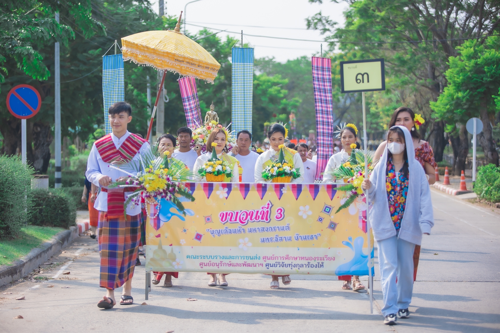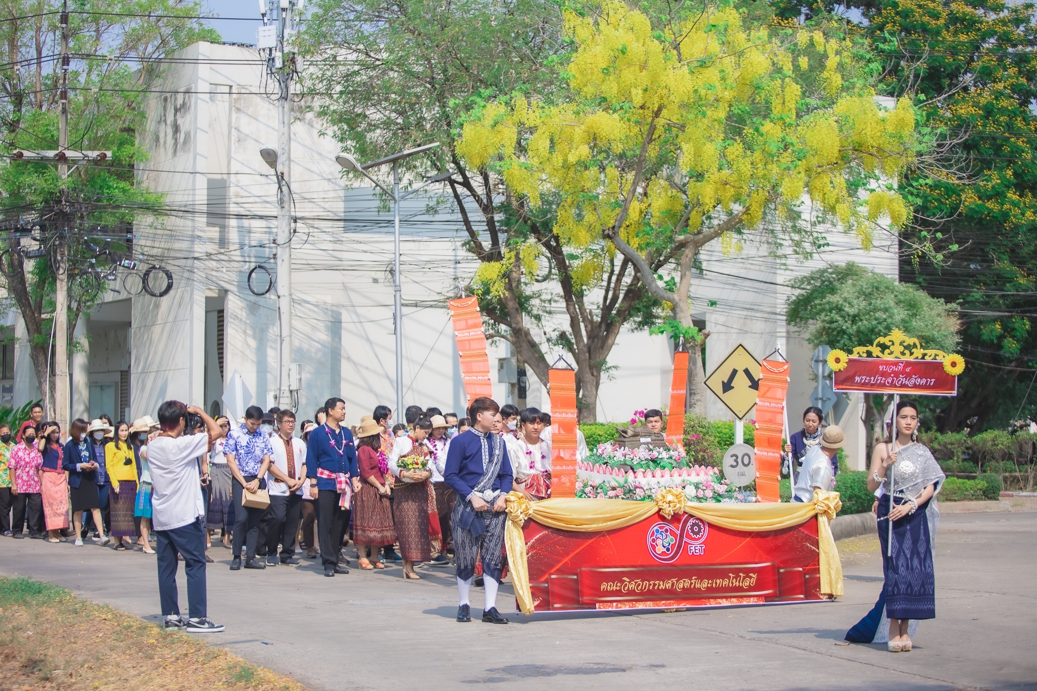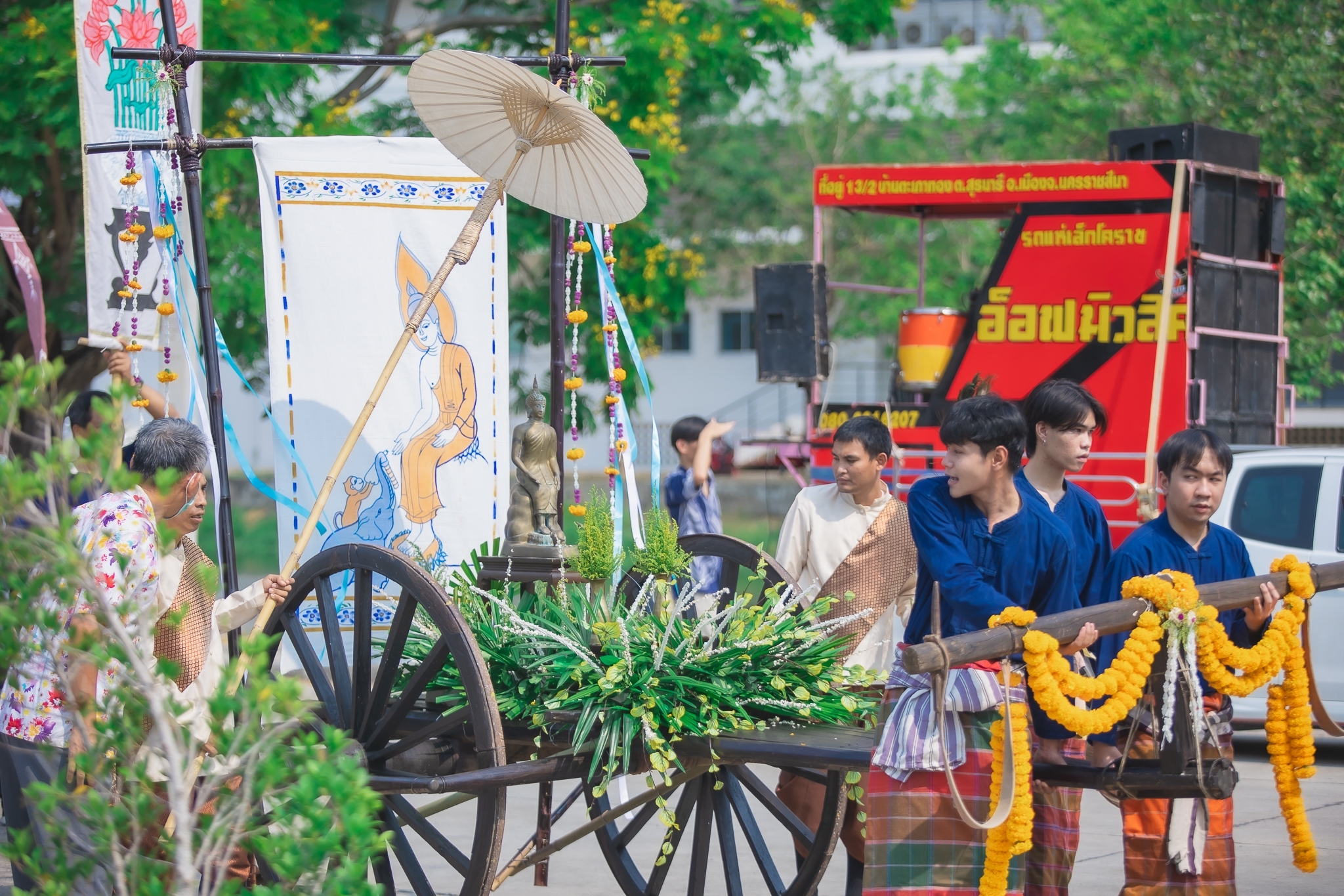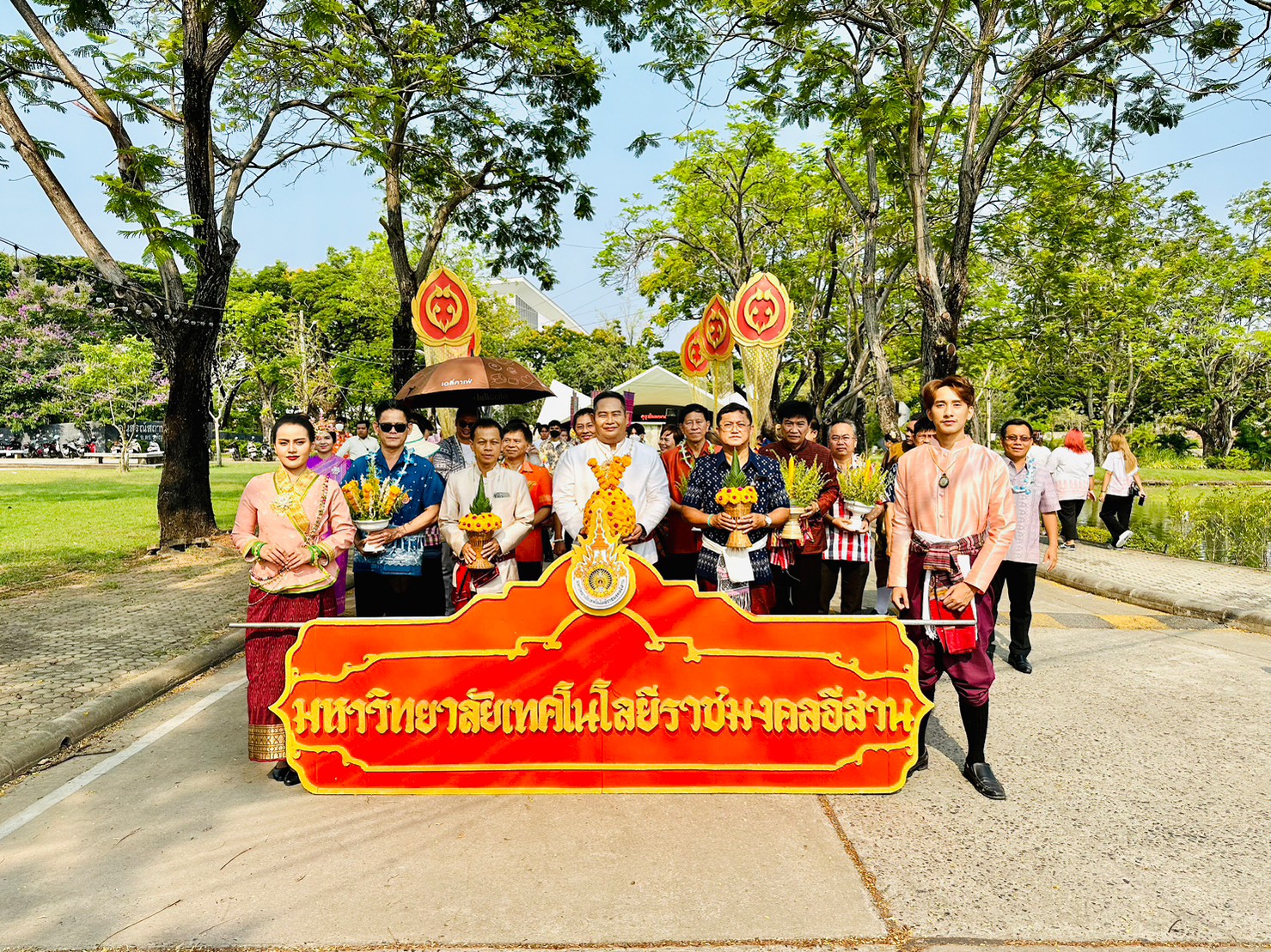 ภายในงานมีพิธีทำบุญตักบาตร (อาหารแห้ง) พระภิกษุสงฆ์ จำนวน 9 รูป การจัดขบวนแห่พระพุทธรูปประจำเมืองนครราชสีมา “พระชัยเมืองนครราชสีมา” พระพุทธรูปพระจำมหาวิทยาลัย “พระพุทธนพรัตน์สีมามงคลพิสุทธิ์” โดยมี ผู้บริหาร อาจารย์อาวุโส องค์การนักศึกษา สภานักศึกษาร่วมในขบวน และขบวนพระประจำวันเกิด การประกวดขบวนพระประจำวันเกิด โดยบุคลากร มทร.อีสานและนักศึกษาต่างจัดขบวนด้วยความสวยงาม และการออกซุ้มอาหารประจำถิ่น
