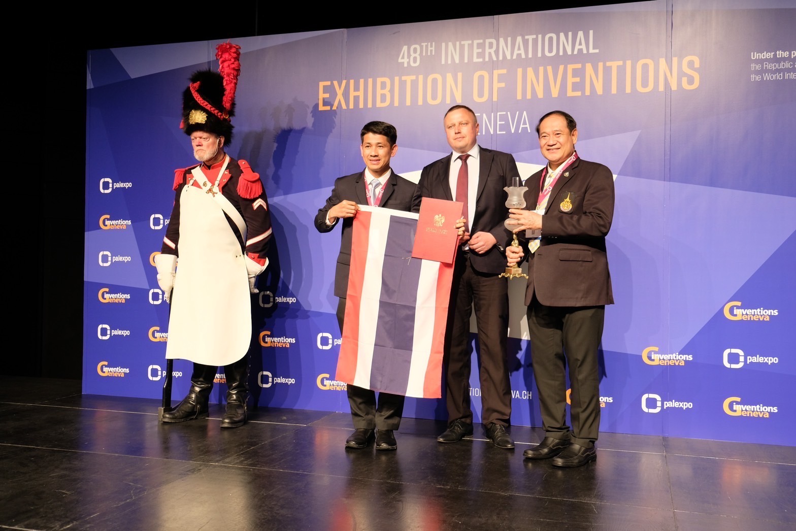 โดย รองศาสตราจารย์ ดร. ฉัตรชัย พลเชี่ยว แห่งมหาวิทยาลัยเทคโนโลยีราชมงคลธัญบุรี นำผลงานประดิษฐกรรมและนวัตกรรม เรื่อง “นวัตกรรมเซลล์โฟโตอิเล็กโตรคะตะไลติกร่วมกับโซลาร์เซลล์ สำหรับการบำบัดน้ำเสียและระบบผลิตน้ำสะอาด” คว้ารางวัล Special Prizes on Stage จากองค์กรนานาชาติ ได้แก่ รางวัล Office des Brevets de Pologne สาธารณรัฐโปแลนด์