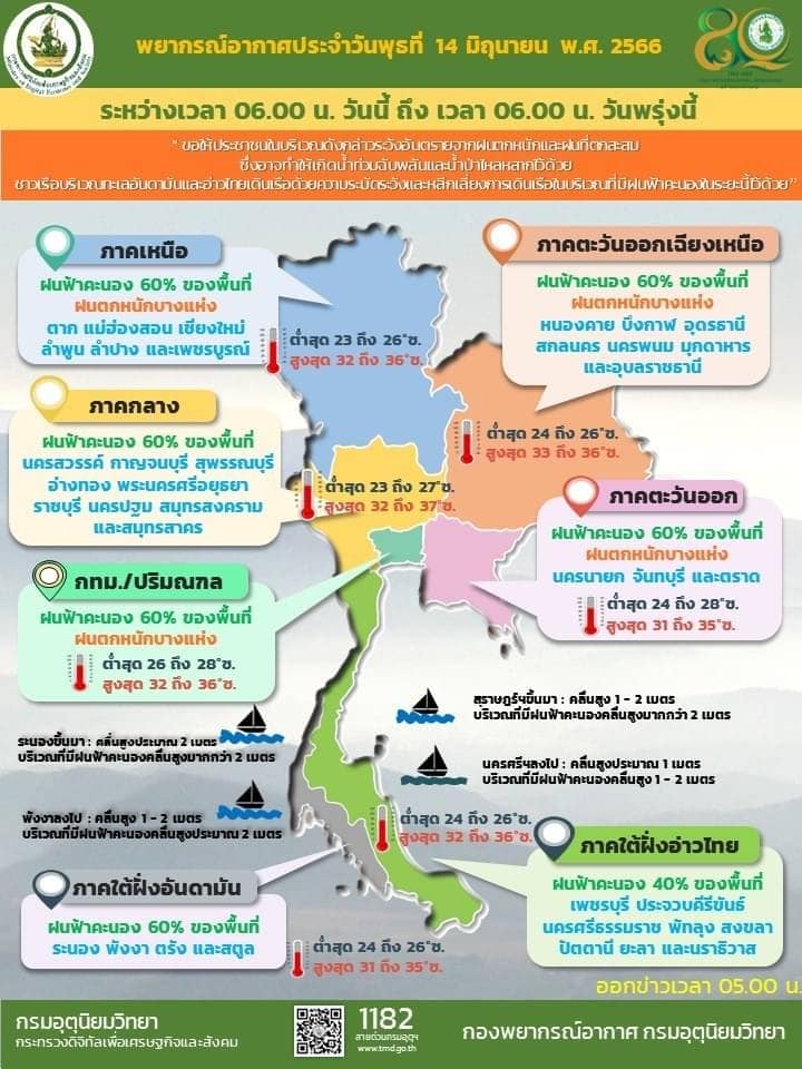 08.00 ประเทศไทยตอนบนฝนตกหนักบางแห่ง เตือนประชาชนระวังอันตราย น้ำท่วมฉับพลัน กรุงเทพ ปริมณฑลฝนร้อยละ 60 ของพื้นที่