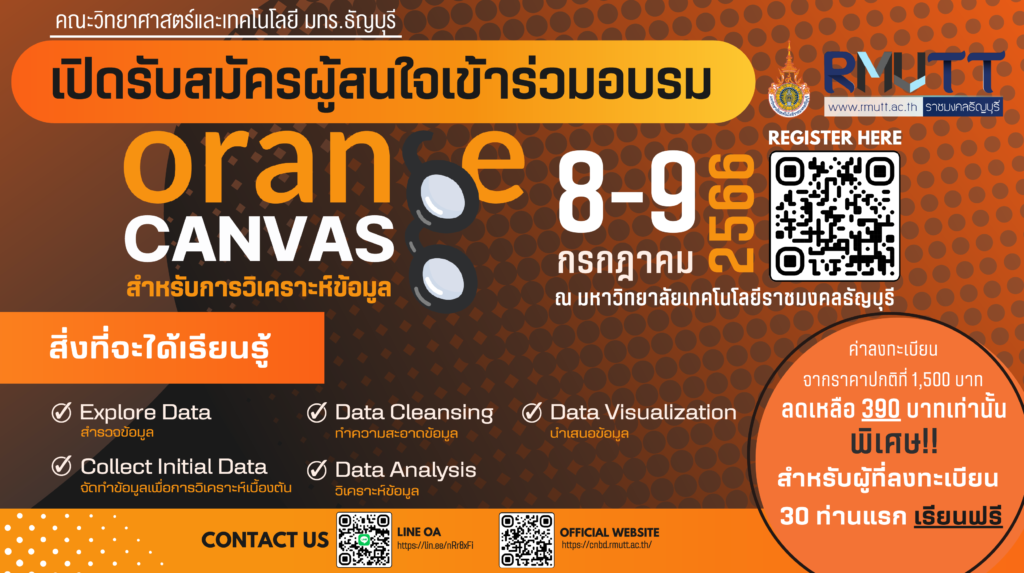 จัดอบอรม วันที่ 8-9 กรกฎาคม 2566 ณ มหาวิทยาลัยเทคโนโลยีราชมงคลธัญบุรี จ.ปทุมธานีค่าลงทะเบียน จากราคาปกติ 1,500 บาท ลดเหลือ 390 บาทเท่านั้น พิเศษ! สำหรับผู้ที่ลงทะเบียนเข้าอบรม 30 ท่านแรก เรียนฟรี ไม่มีค่าใช้จ่าย สอบถามเพิ่มเติมได้ที่ 0-2549-4163 เข้าดูรายละเอียดได้ที่เว็บไซต์ http://cnbd.rmutt.ac.th