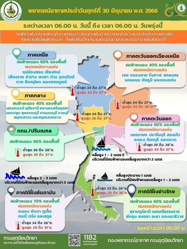 08.00 กรมอุตุฯ เผย ประเทศไทยยังมีฝนตกหนักบางแห่ง ทะเลคลื่นสูง 2-3 เมตร กรุงเทพและปริมณฑล มีฝนร้อยละ 60 ของพื้นที่
