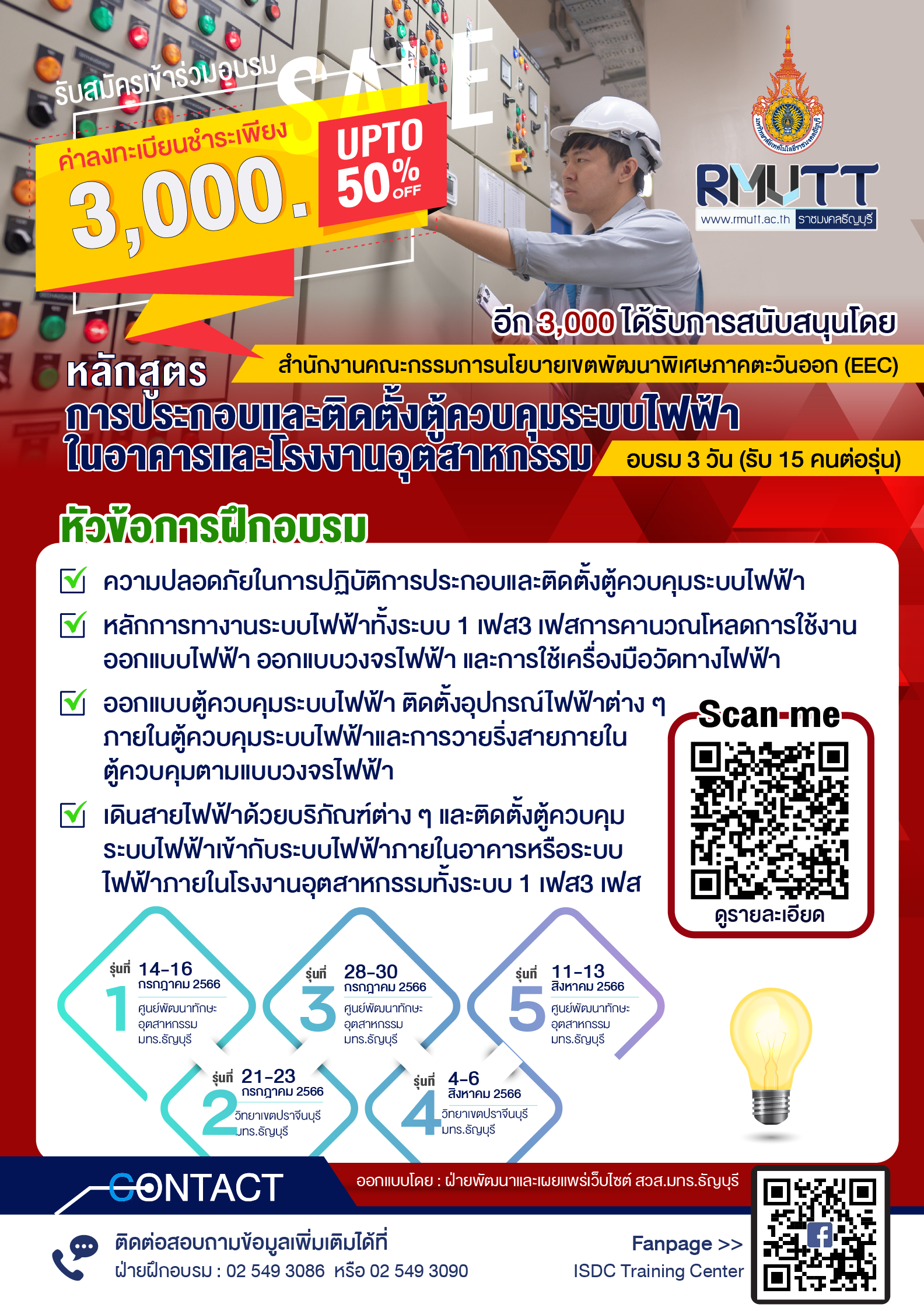รุ่นที่ 1 ระหว่างวันที่ 14 – 16 กรกฎาคม 2566 ณ ศูนย์พัฒนาทักษะอุตสาหกรรม มทร.ธัญบุรี