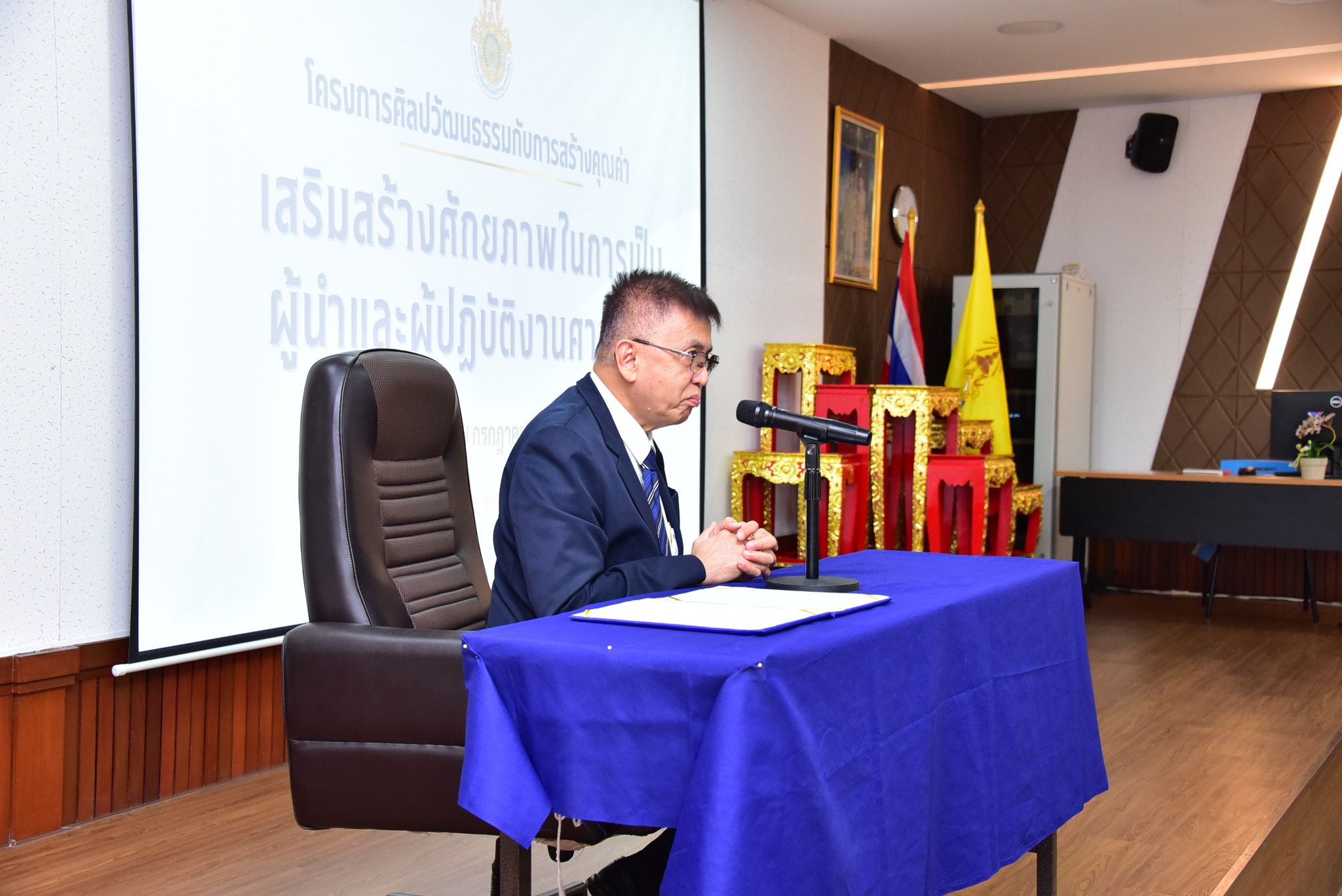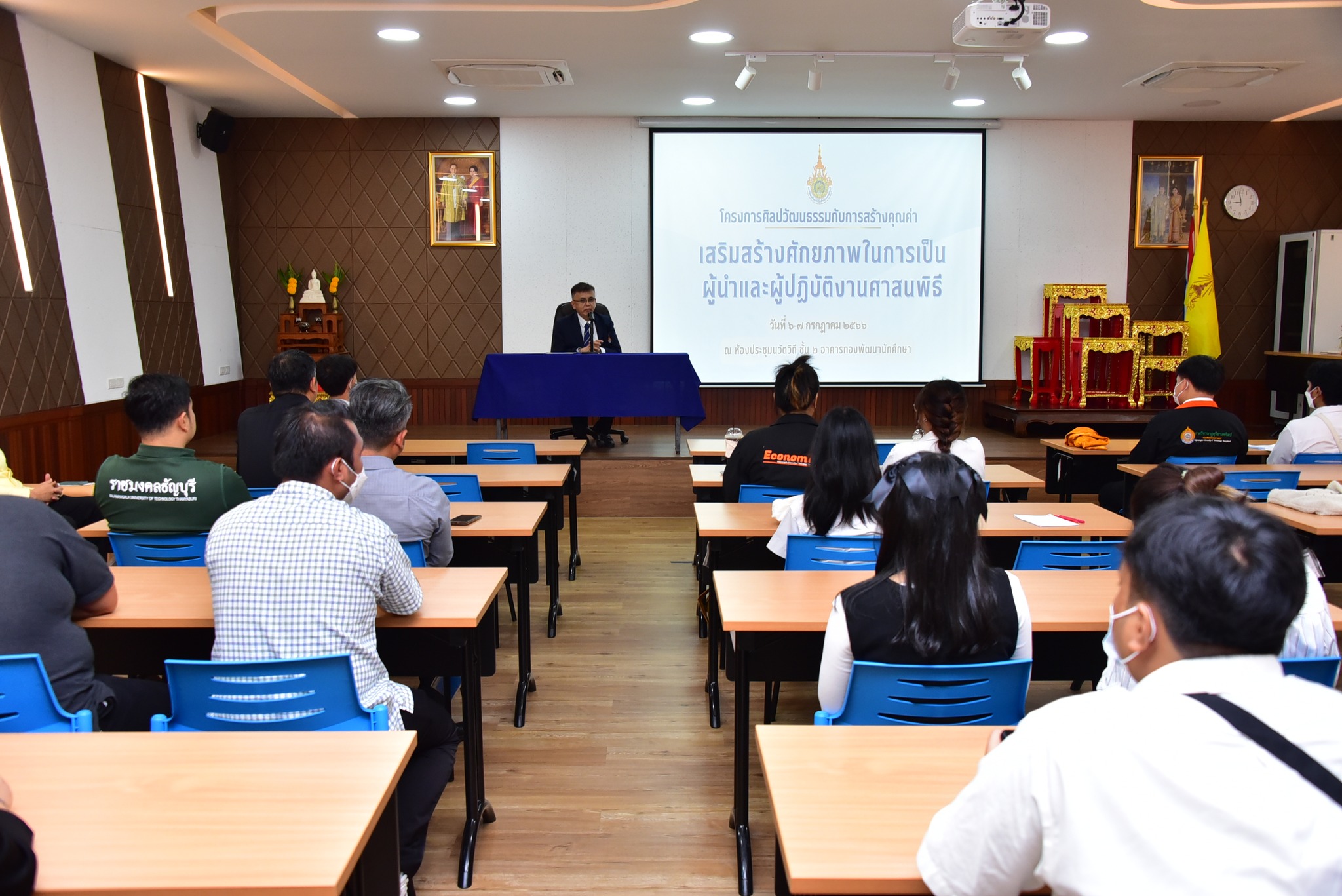สำหรับโครงการศิลปวัฒนธรรมกับการสร้างคุณค่า “เสริมสร้างศักยภาพในการเป็นผู้นำและผู้ปฏิบัติงานศาสนพิธี” จัดขึ้นระหว่างวันที่ 6-7 กรกฎาคม 2566 มุ่งหวังให้ผู้เข้าร่วมโครงการเกิดความรู้ความเข้าใจเกี่ยวกับการปฏิบัติงานศาสนพิธีต่างๆของชาติที่ถูกต้องตามหลักราชการ ได้แนวทางในการจัดกิจกรรม มีทักษะการจัดศาสนพิธีต่างๆภายในมหาวิทยาลัย รวมถึงสามารถปฏิบัติตนในการเข้าร่วมศาสนพิธีทั้งภายในและภายนอกมหาวิทยาลัยได้อย่างเหมาะสม ถูกต้องตามหลักของราชการ ในกิจกรรมมีการบรรยายเนื้อหาสาระ 5 หัวข้อหลัก คือ