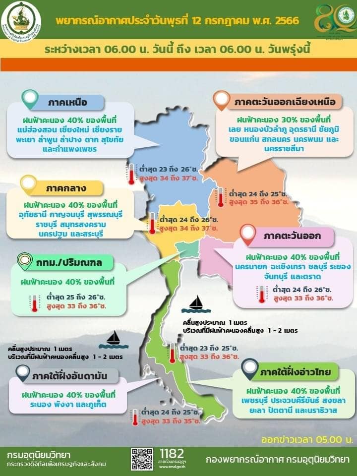 08.00 กรมอุตุฯ เผยประเทศไทยยังมีฝนฟ้าคะนอง กรุงเทพ-ปริมณฑล มีฝนร้อยละ 40 ทะเลคลื่นสูง 1-2 เมตร