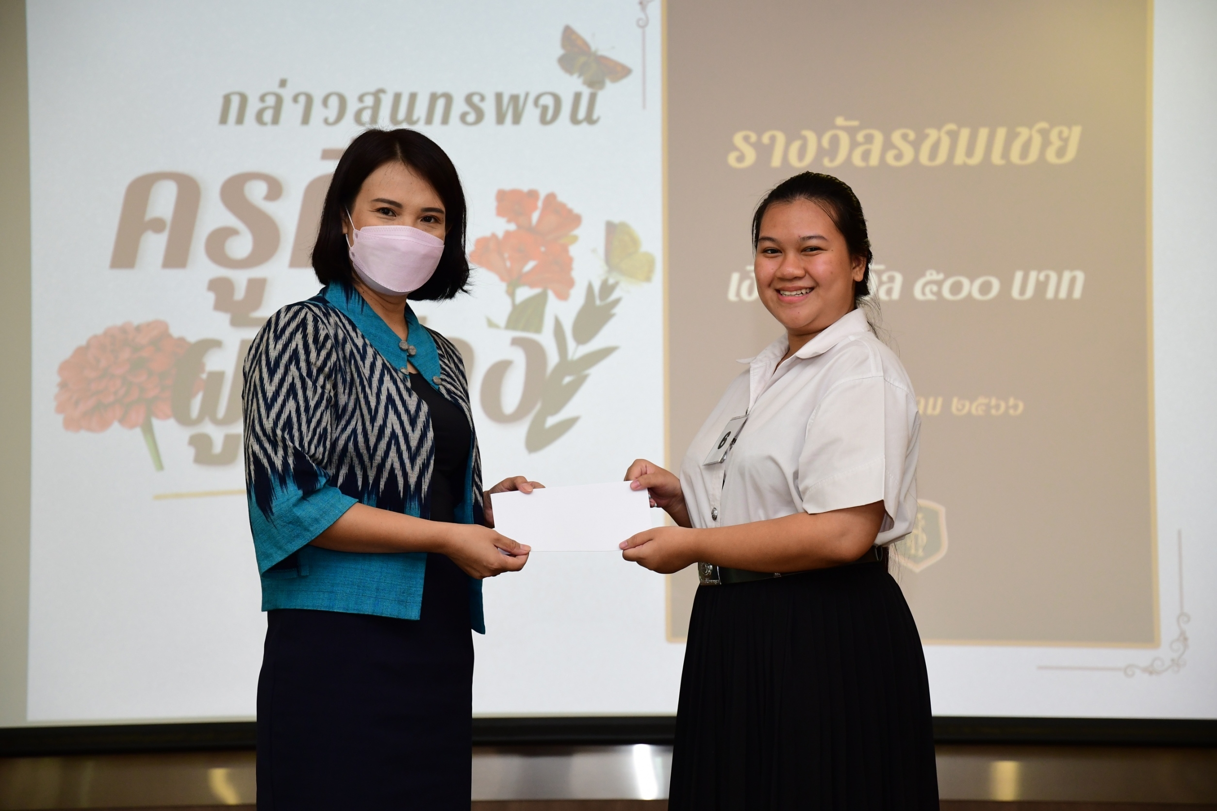 รางวัลรองชนะเลิศอันดับที่ 1 ได้แก่ นางสาวณัฐนัน คำสุวรรณ คณะบริหารธุรกิจ