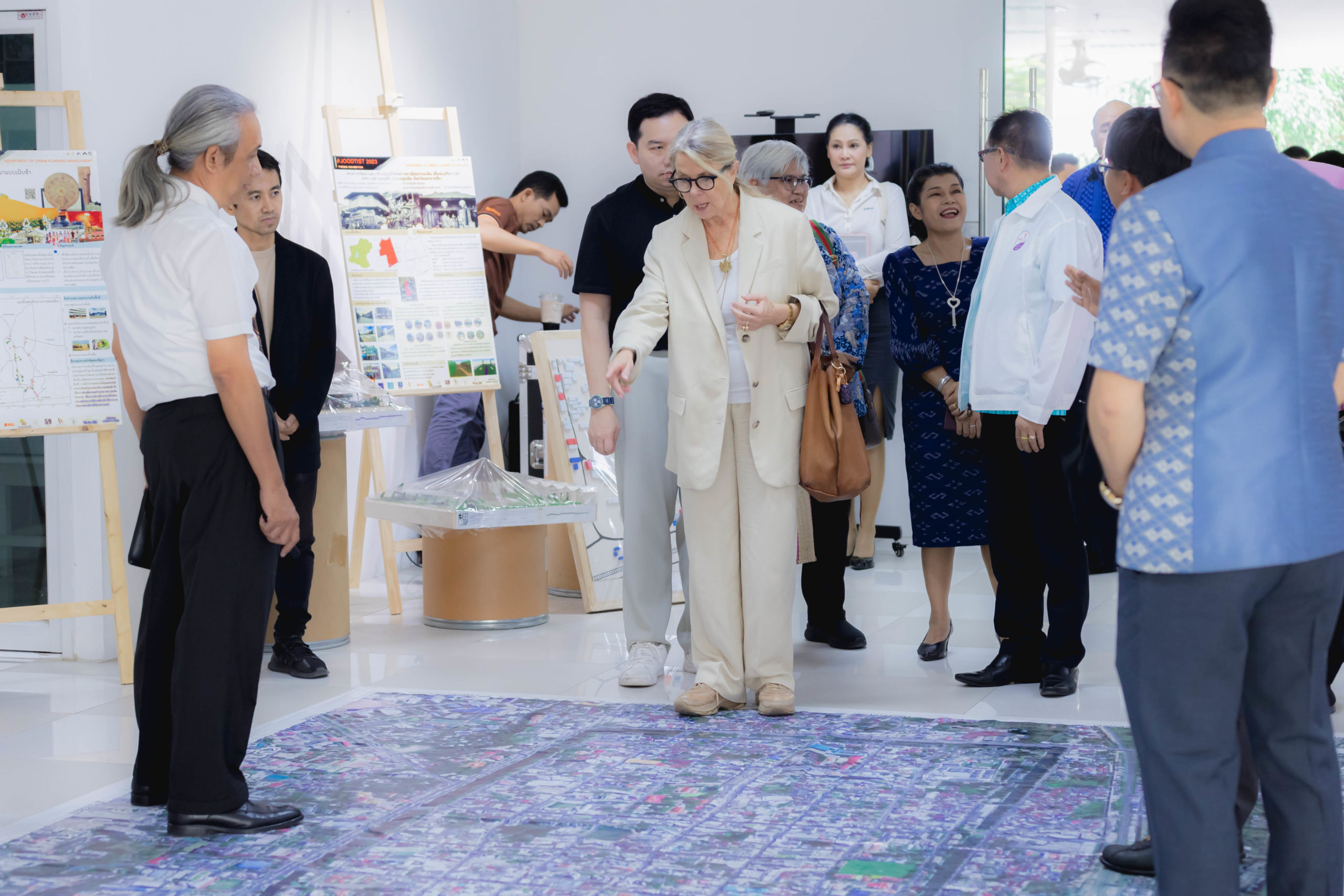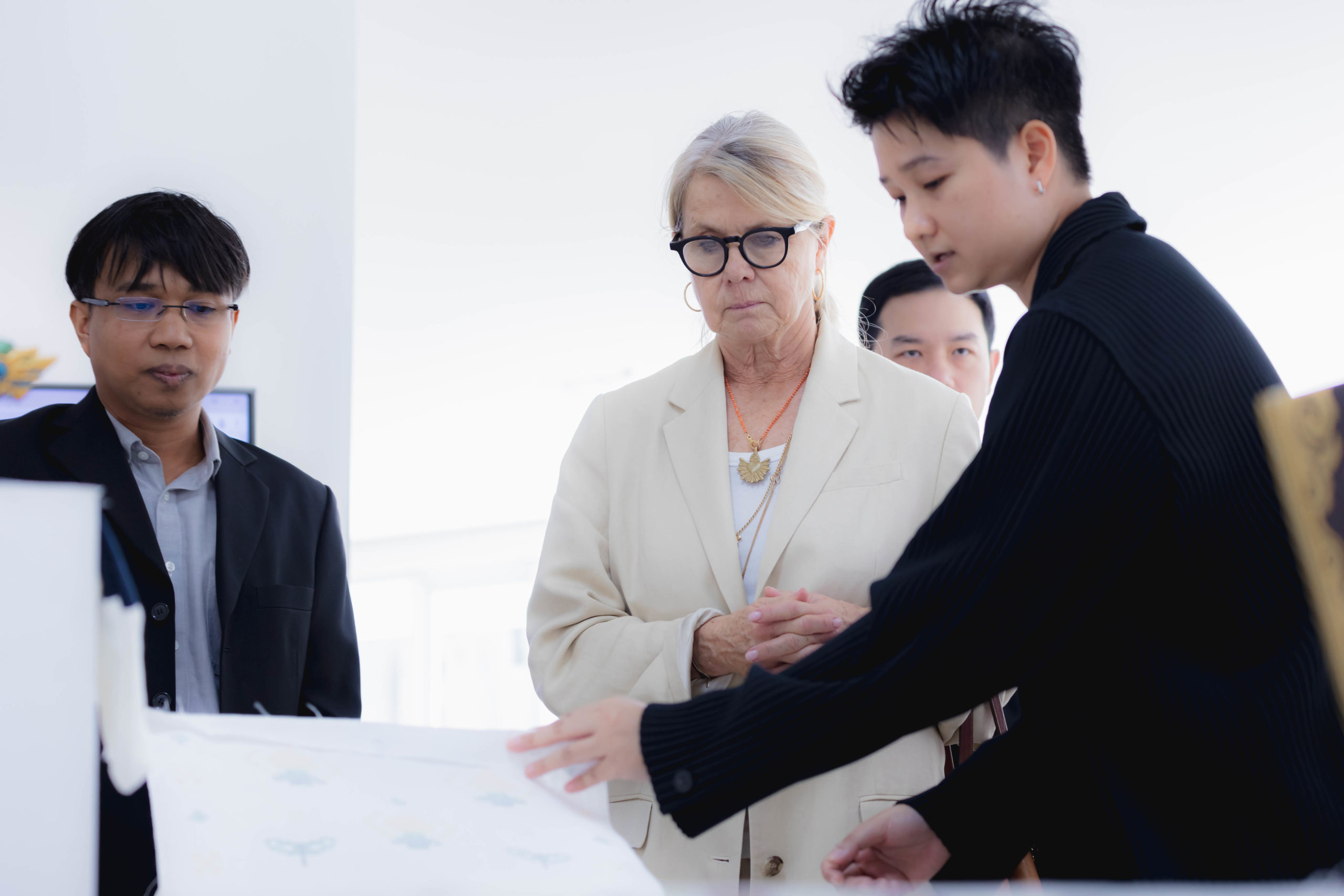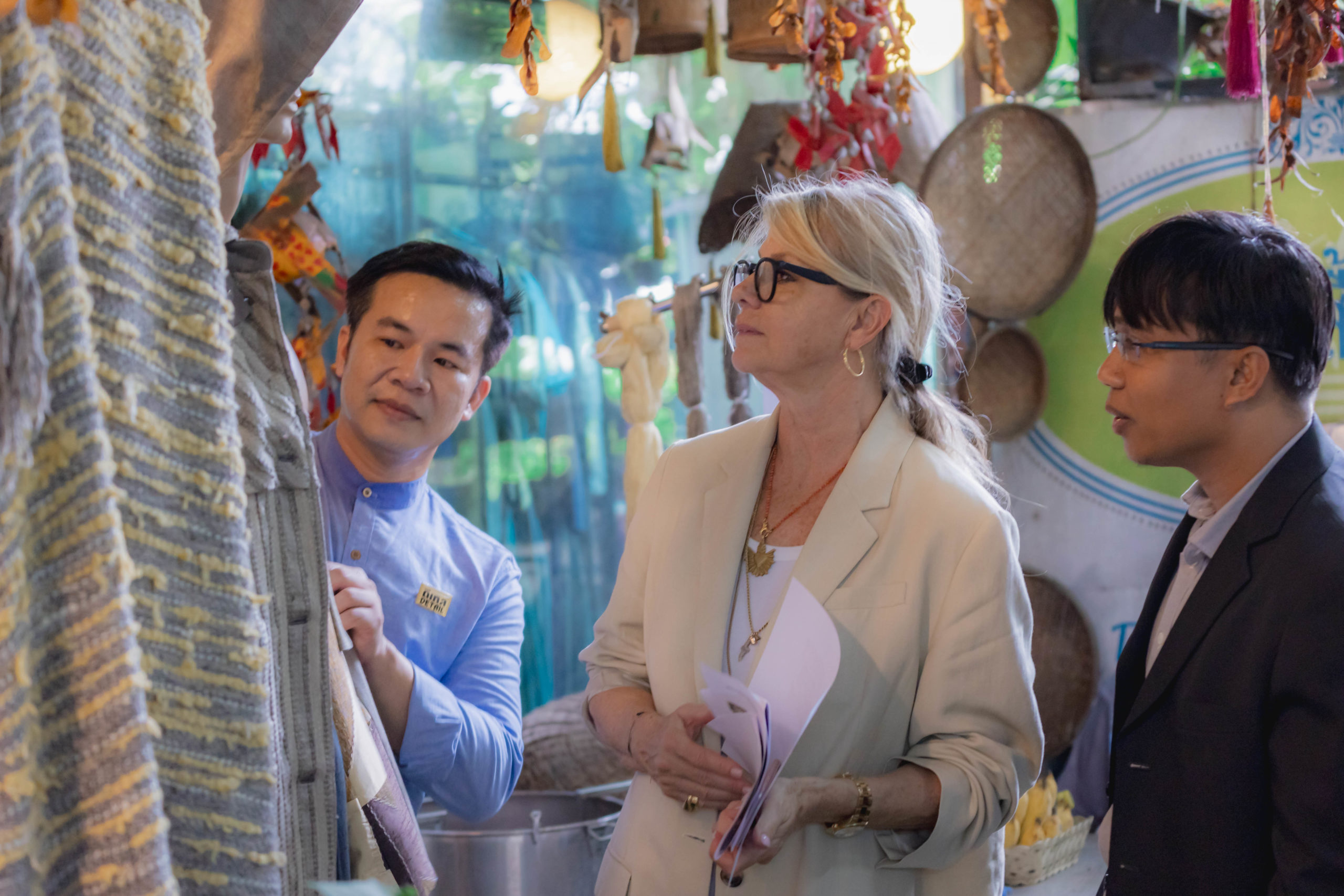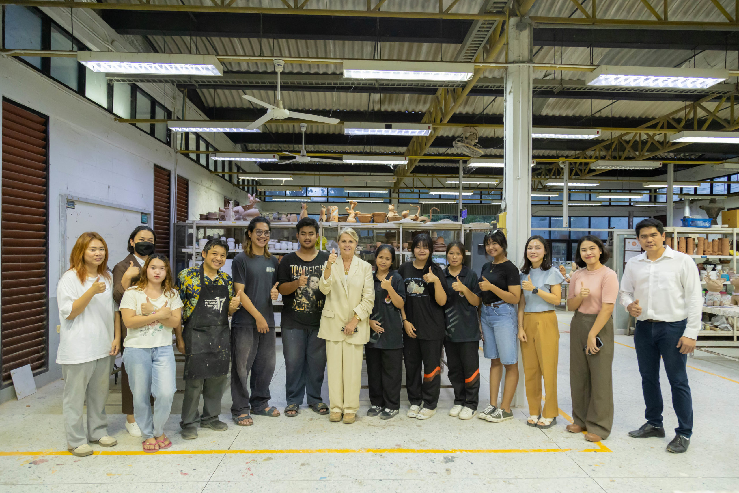 นอกจากนี้ ยังมีการลงพื้นที่เยี่ยมชม ร้าน Detail of Love (ชุมชนเครือข่ายทางวัดธรรมหนองไผ่ล้อม) อ.เมือง จ.นครราชสีมา และ ลงพื้นที่เยี่ยมชมการผลิตและเทคโนโลยีผ้าไหมปักธงชัย ร้านฅญา บาติก และศูนย์ไหมนครชัยบุรินทร์ อ.ปักธงชัย จ.นครราชสีมา เพื่อช่วยแก้ไขปัญหาและพัฒนาการผลิต ช่วยยกระดับ Soft Power ผ้าไหมอีสาน ซึ่งในพื้นที่ภาคอีสานเป็นแหล่งผลิตผ้าไหมจำนวนมากที่สุดในประเทศไทย รวมถึงการออกแบบตกแต่งภายใน และงานศิลปะแขนงต่าง ๆ ของวัฒนธรรมอีสานสู่ระดับสากล ซึ่งผลิตภัณฑ์และวัฒนธรรมเหล่านี้ จะสามารถสร้างรายได้ ต่อลมหายใจให้กับประชาชนชาวอีสาน ทั้งยังจะเป็นการปลูกฝังให้คนรุ่นใหม่ได้รัก หวงแหน และให้ความสำคัญกับรากวัฒนธรรม ที่สามารถสร้างรายได้ เลี้ยงชีวิตแบบบูรณาการ ได้จริงต่อไปในอนาคต