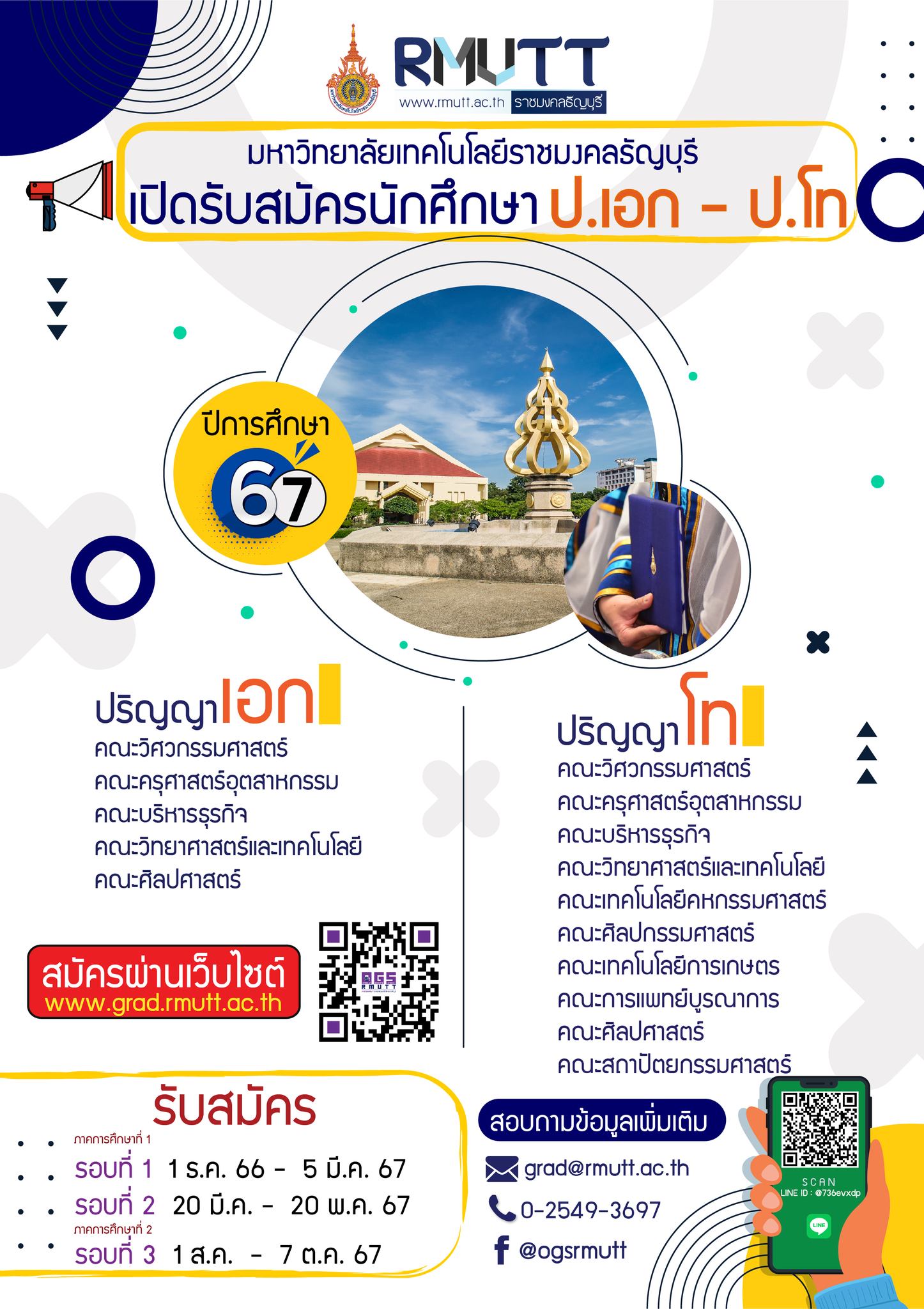 มทร.ธัญบุรี แจ้งเปิดรับสมัครนักศึกษาปริญญาเอก ปีการศึกษา 2567 รอบที่ 1 ภาคการศึกษาที่ 1 ใน 5 คณะ Posted by radio895 Last Updated: January 22, 2024 สำนักงานบัณฑิตศึกษา มหาวิทยาลัยเทคโนโลยีราชมงคลธัญบุรี แจ้งเปิดรับสมัครนักศึกษาระดับบัณฑิตศึกษา (ปริญญาเอก) ปีการศึกษา 2567 รอบที่ 1 ภาคการศึกษาที่ 1 ใน 5 คณะ ได้แก่ คณะวิศวกรรมศาสตร์ คณะครุศาสตร์อุตสาหกรรม คณะบริหารธุรกิจ คณะวิทยาศาสตร์และเทคโนโลยี และคณะศิลปศาสตร์ เปิดรับสมัครรอบที่ 1 ตั้งแต่บัดนี้ถึงวันที่ 5 มีนาคม 2567 เข้าดูรายละเอียดหลักสูตร การรับสมัครและสมัครเรียนออนไลน์ได้ทาง www.grad.rmutt.ac.th . เรียบเรียงโดย อาทิตยา ปักกะทานัง รายงานโดย ดาริสา ยิ้มสิงห์ popular posts ราชมงคลธัญบุรี ชวนร่วมชมและเชียร์ทัพนักกีฬาในการแข่งขันกีฬามหาวิทยาลัยแห่งประเทศไทย ครั้งที่ 51 รอบคัดเลือก เขตภาคกลาง “ธัญบุรีเกมส์” 16 – 20 พ.ย.นี้ FIN TALK [EP.113] ชีวิตติดแอปฯ กับ Embedded Finance : ใช้จ่ายง่าย แต่หนี้ร้ายกว่าเดิม สถานีวิทยุราชมงคลธัญบุรี เปิดรับสมัคร เจ้าหน้าที่ประชาสัมพันธ์ เพลินภาษานานาสาระ l ธรรมเนียมการฝังรก radio895 January 22, 2024