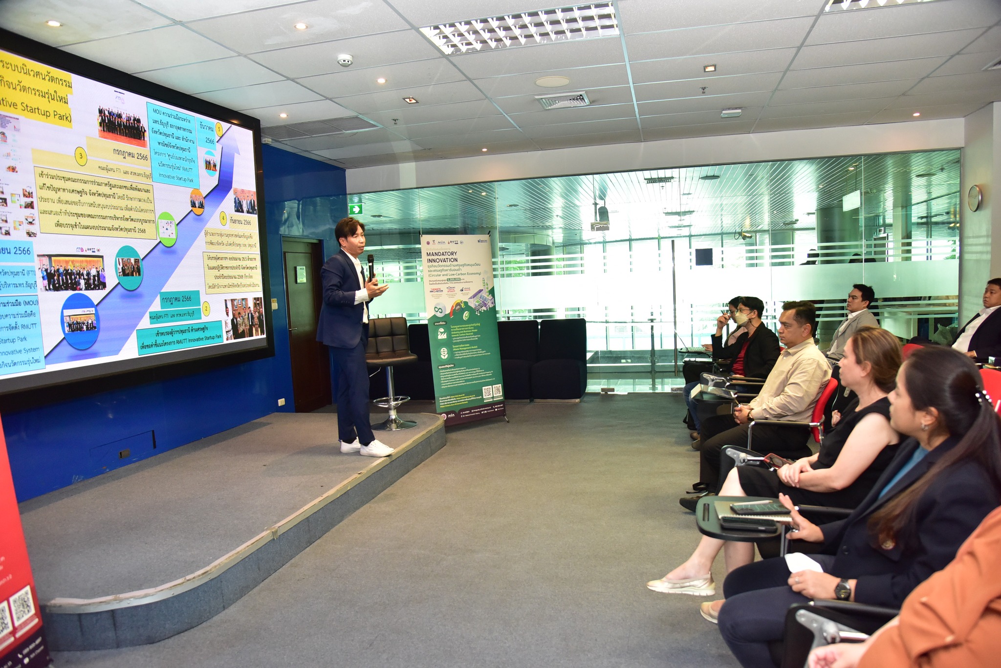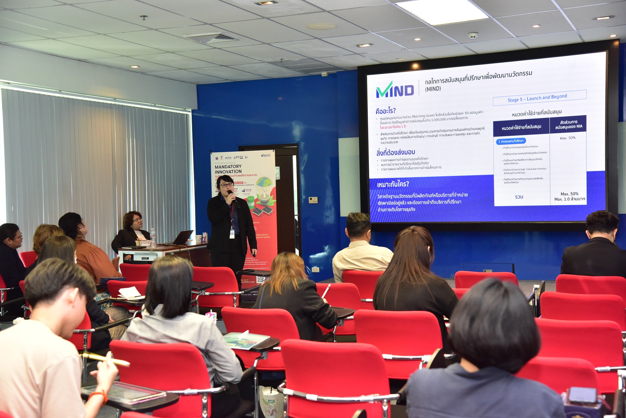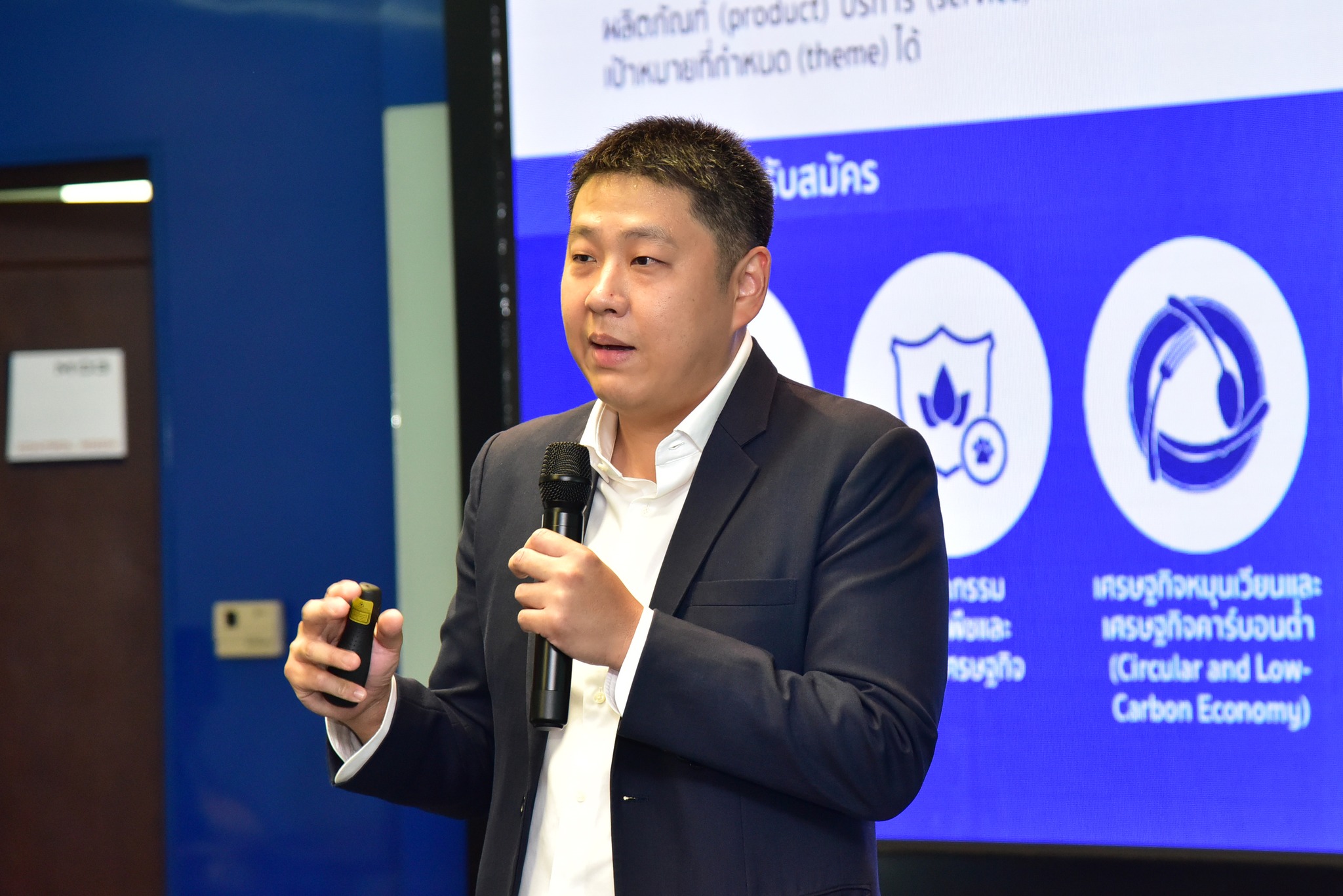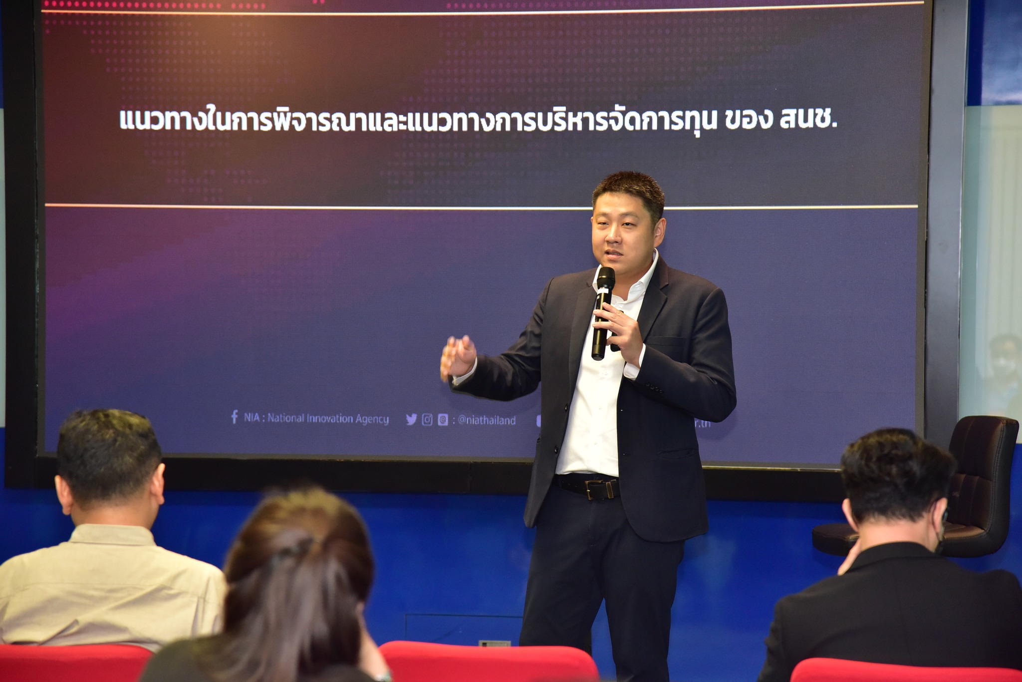 คุณอุกฤช กิจศิริเจริญชัย ผู้จัดการพัฒนานวัตกรรมอาวุโส ฝ่ายนวัตกรรมเพื่อเศรษฐกิจ สนช. ได้แนะนำแพลทฟอร์มนวัตกรรมที่จำเป็นต่อการพัฒนาประเทศ